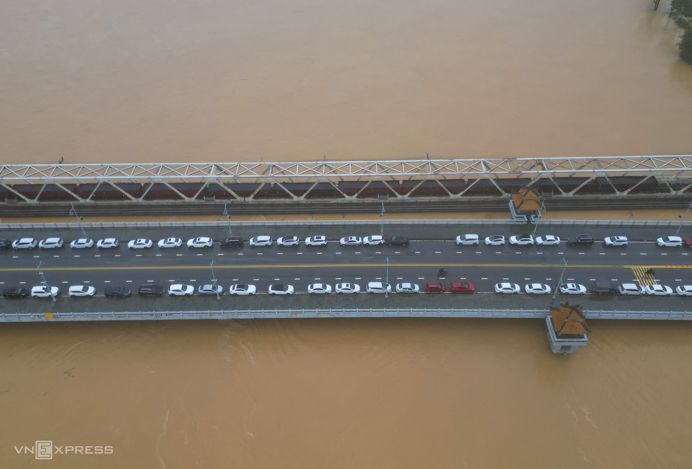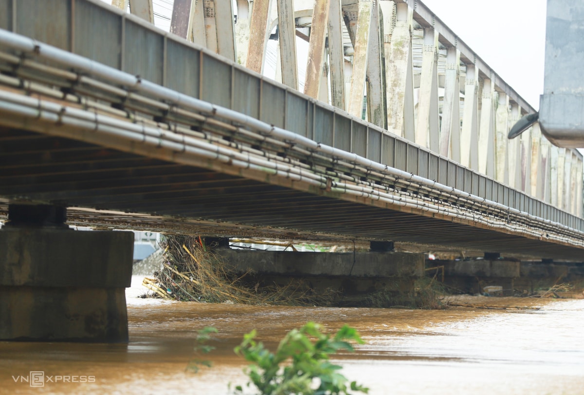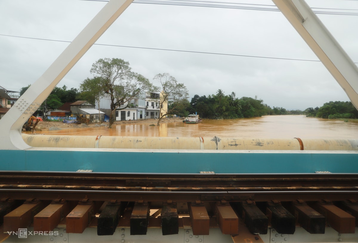 Trong đợt mưa lũ vừa qua, cầu đường sắt Bạch Hổ và Dã Viên bắc qua sông Hương ba lần được tàu hàng chở đá trấn giữ, ngăn nguy cơ lũ cuốn trôi cầu.