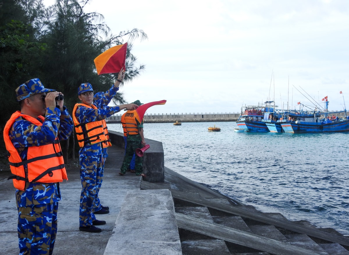 Bộ đội Trường Sa chuẩn bị nơi ở cho ngư dân tránh trú trên các đảo, biên phòng bắn pháo hiệu cấp tập kêu gọi tàu bè tránh trú trước bão Kalmaegi đổ bộ.