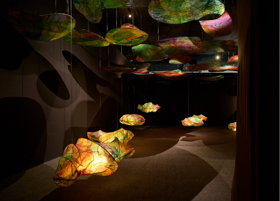 Căn phòng cuối cùng – Mộng Ước là thế giới mê hoặc, trừu tượng do ba nghệ sĩ thị giác Việt Nam sáng tạo. Trong ảnh là tác phẩm Thiêng Thở của nghệ sĩ Nguyễn Đức Phương, mô tả mặt hồ tĩnh lặng ban đêm, với đốm sáng là những con đom đóm, nhưng tất cả được treo ngược. Toàn bộ vật liệu sử dụng trong tác phẩm là loại tái chế, gam màu lấy từ chính những chiếc túi nilon đã qua sử dụng trong cuộc sống hàng ngày.