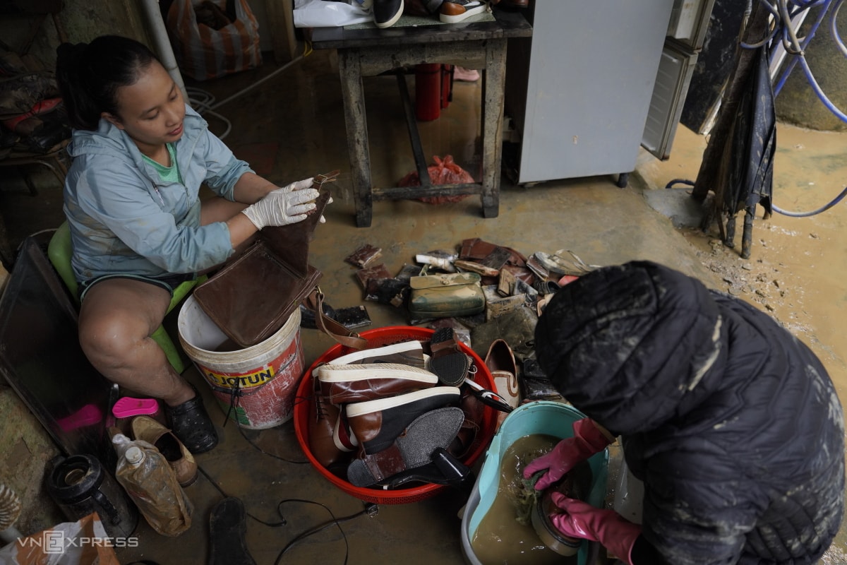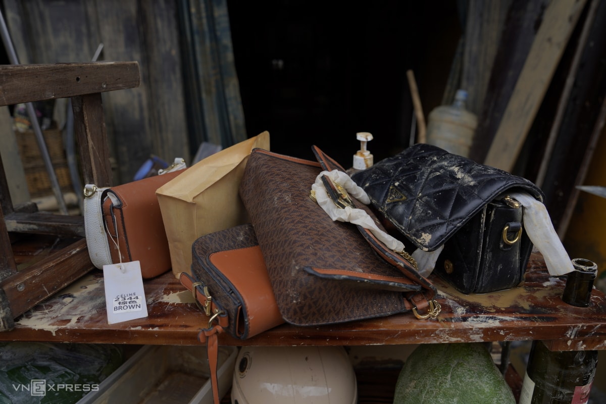 Hàng hoá ngâm bùn non sau lũ ở phố cổ Hội An