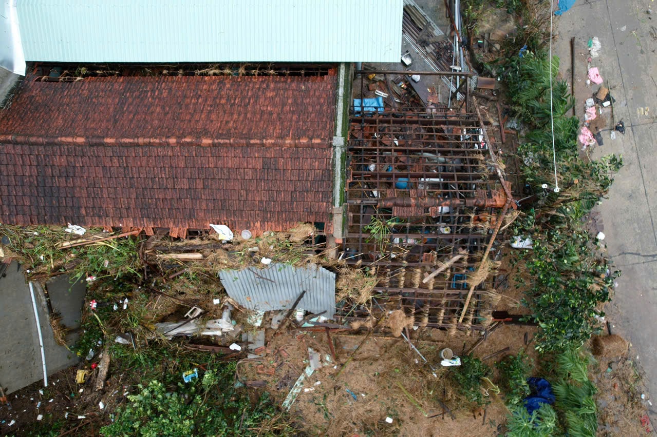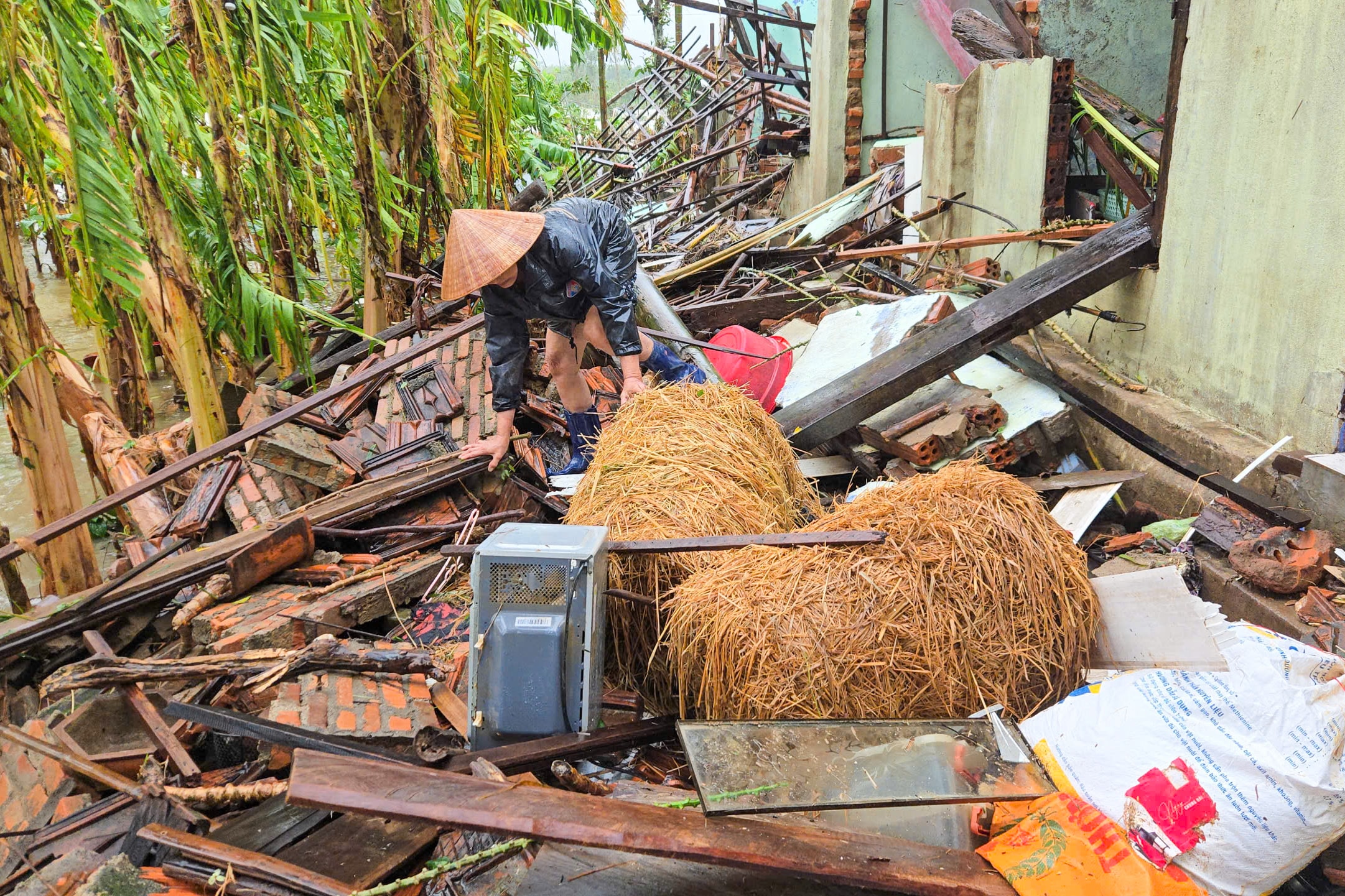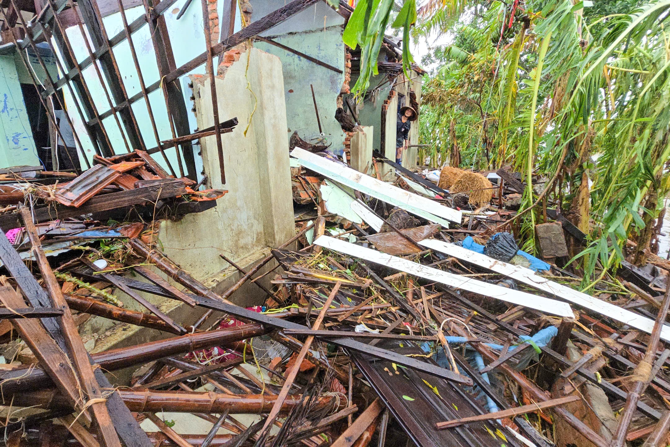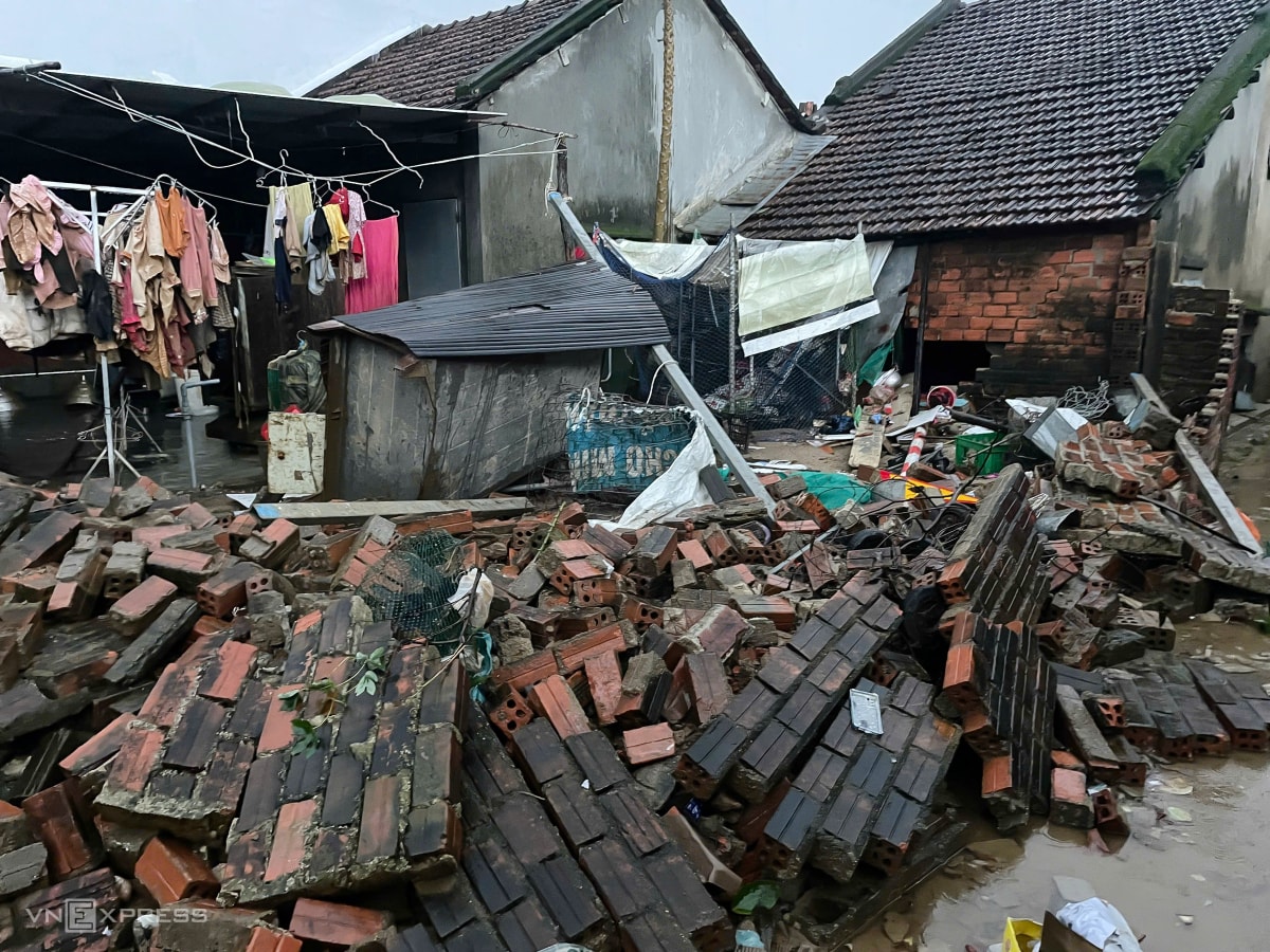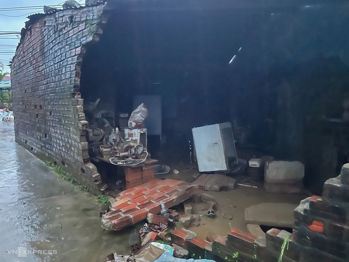 Nhiều căn nhà cấp 4 ở xã Hòa Thịnh sập tường, mái ngói, vật dụng sinh hoạt, tài sản bị lũ cuốn trôi sau trận lũ lịch sử.