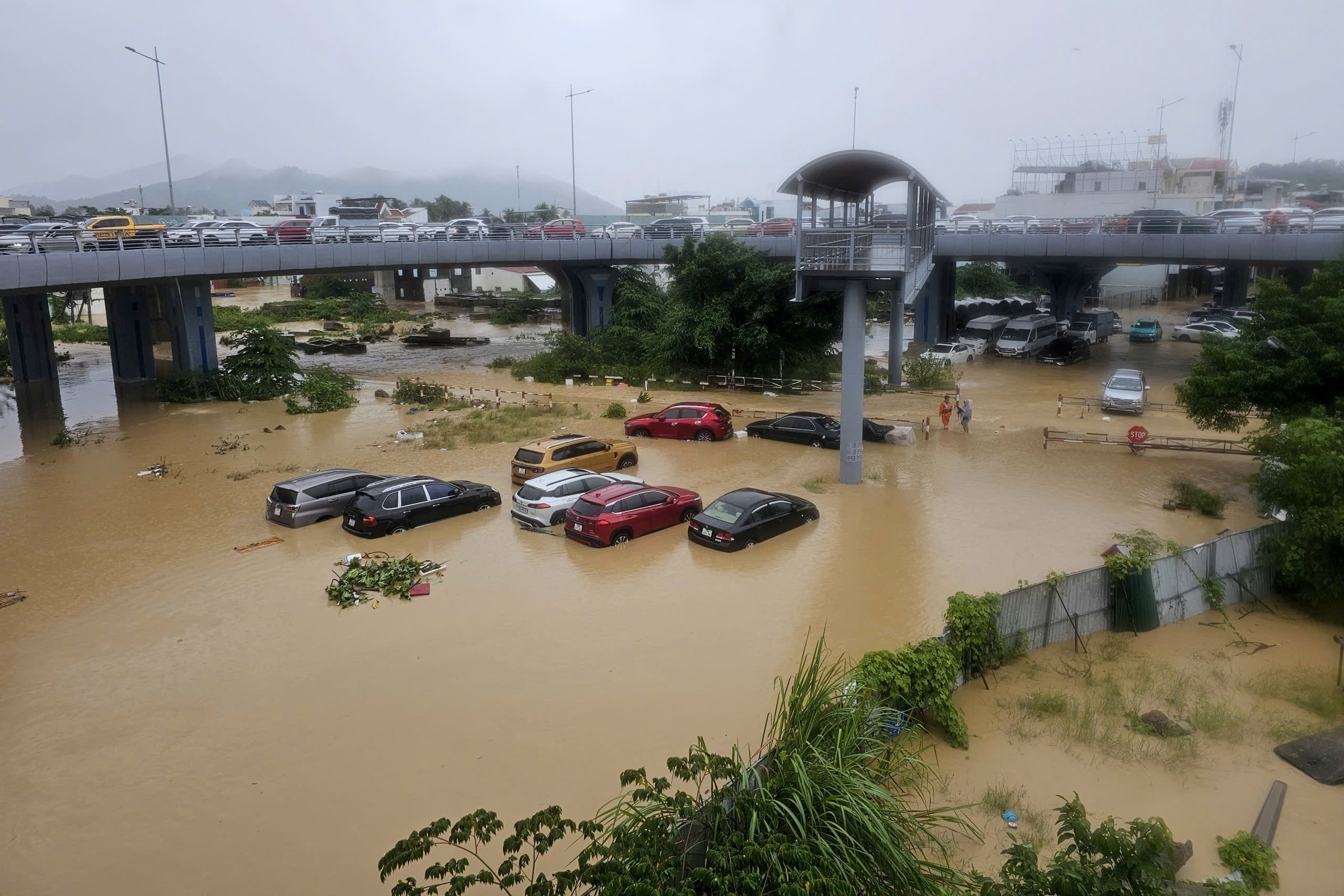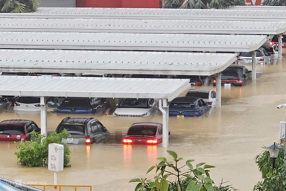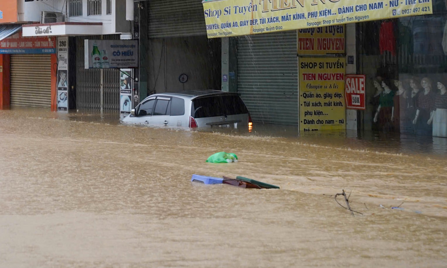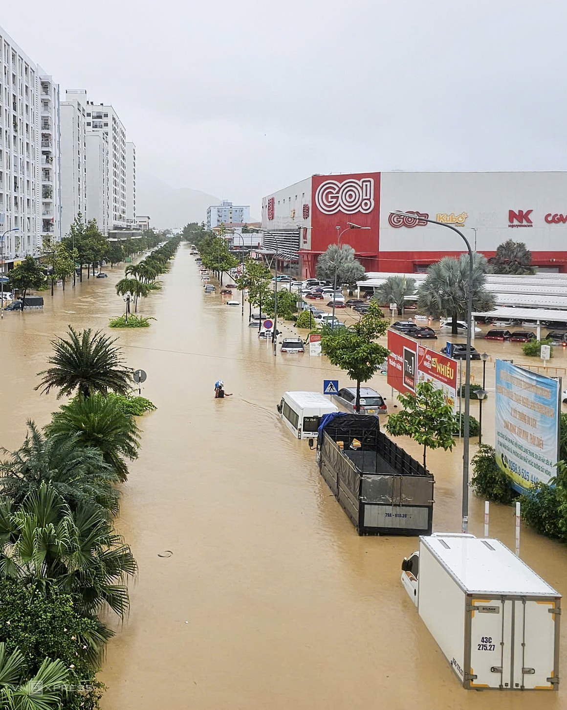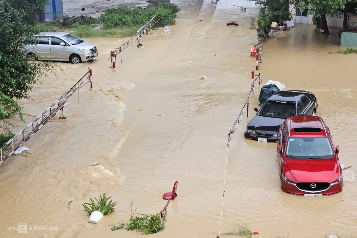 Hàng loạt ôtô bị lũ nhấn chìm ở Nha Trang