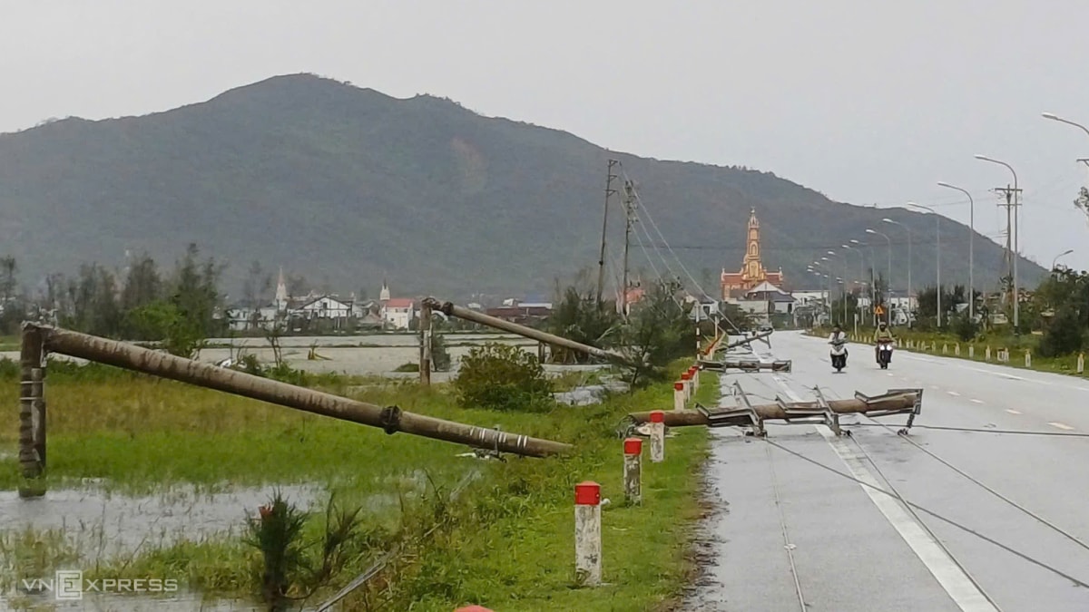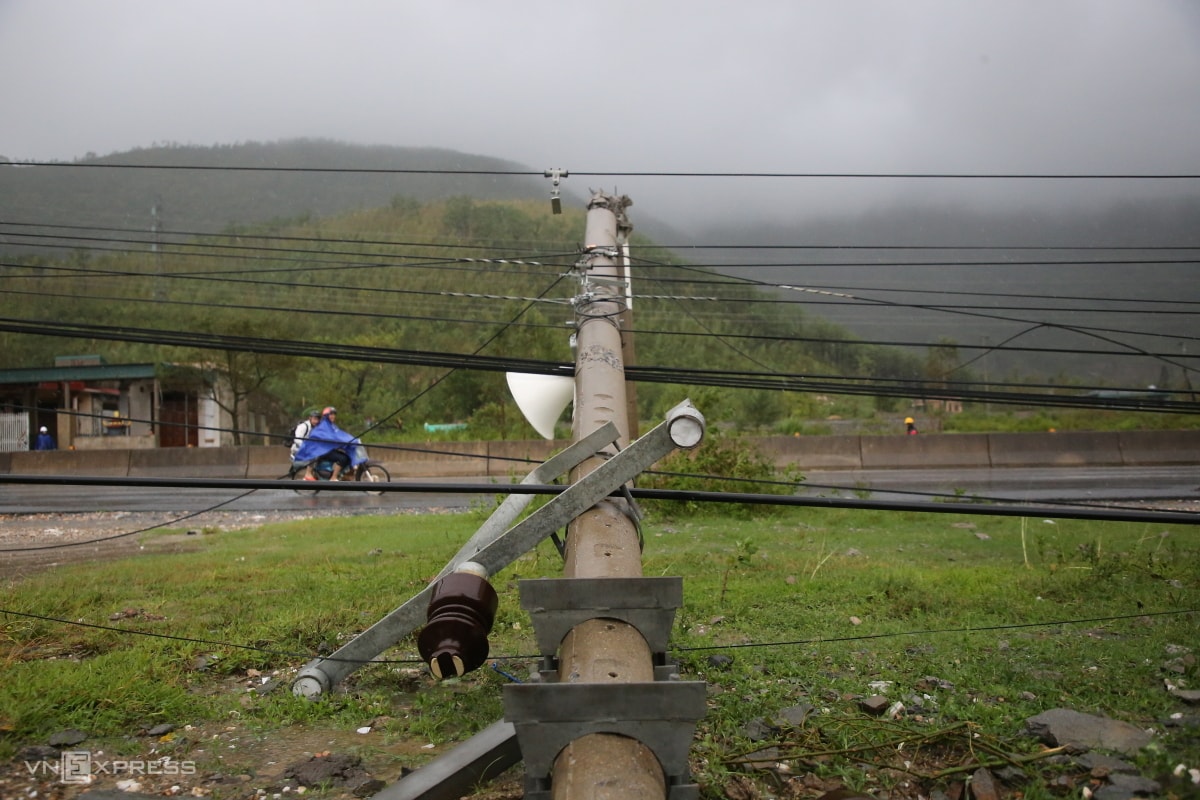 Hàng loạt trụ điện, viễn thông gãy đổ sau bão Bualoi