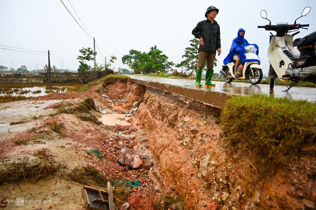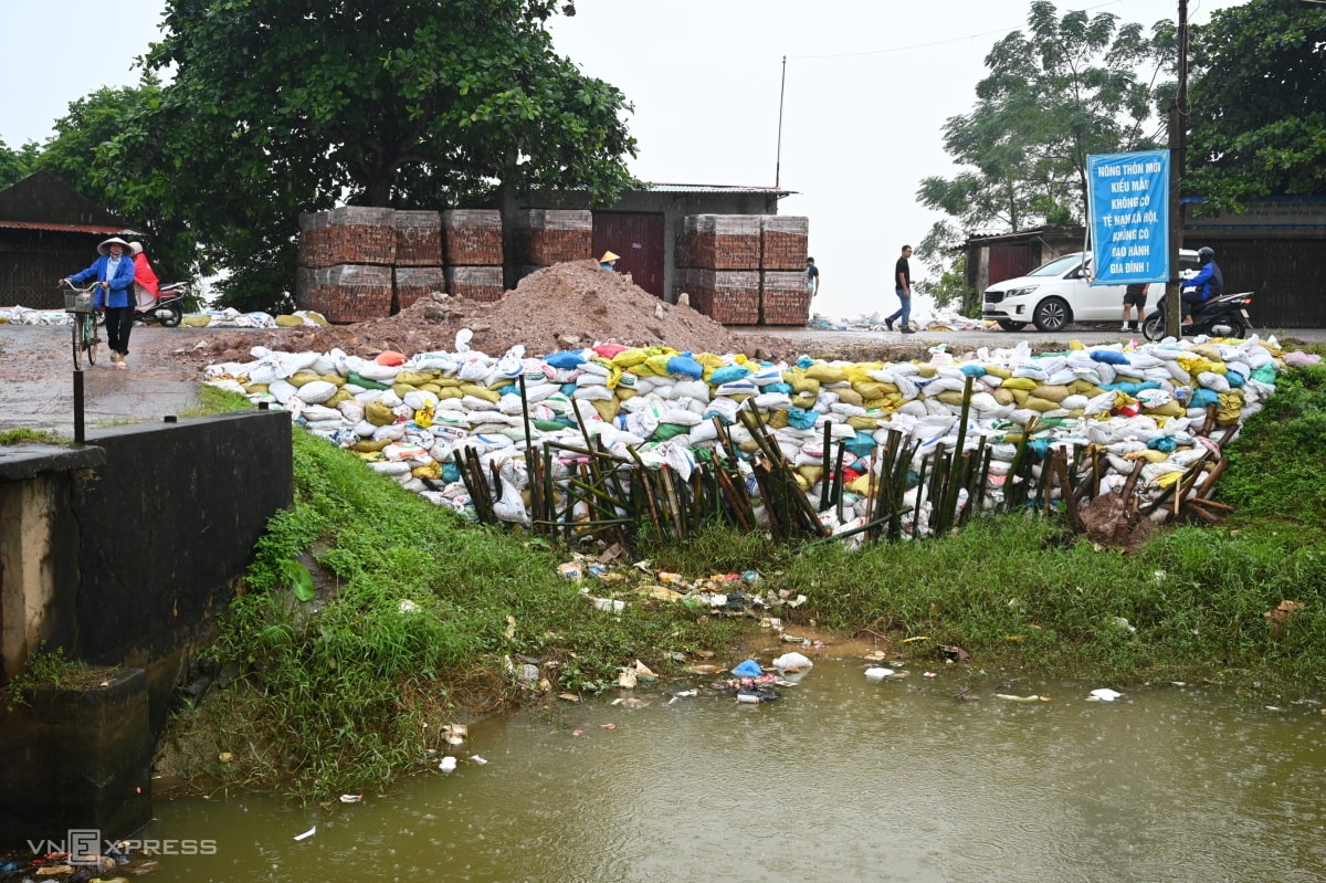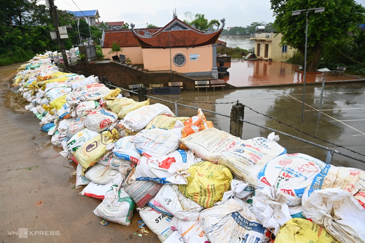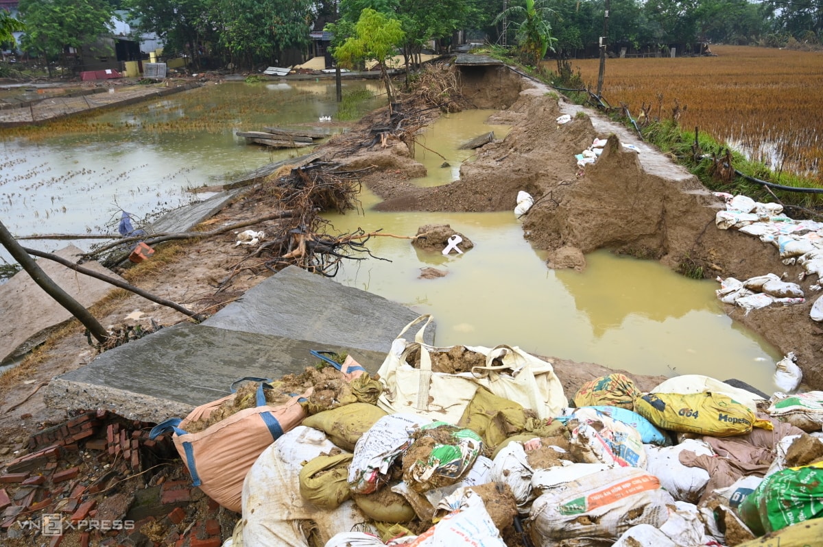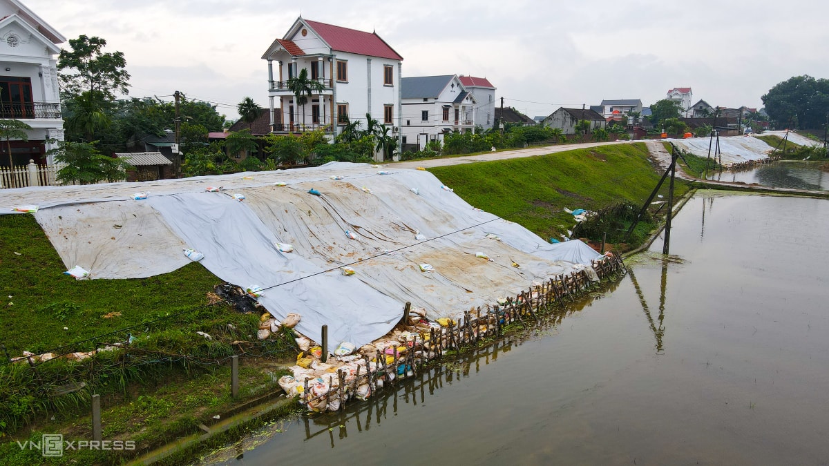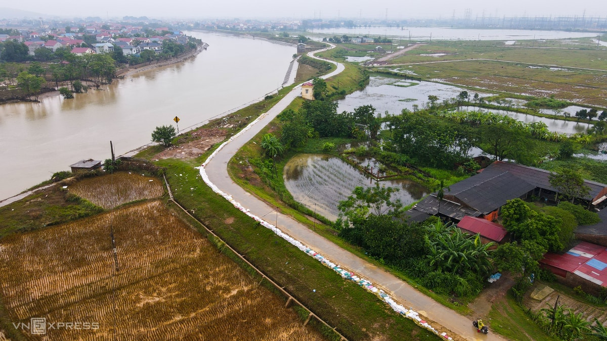 Mưa lũ sau bão Matmo khiến tuyến đê sông Cầu, sông Thương bị sạt lở, rò rỉ, phải gia cố khẩn cấp bằng cọc tre, bao cát và "khoác áo" chống thấm.