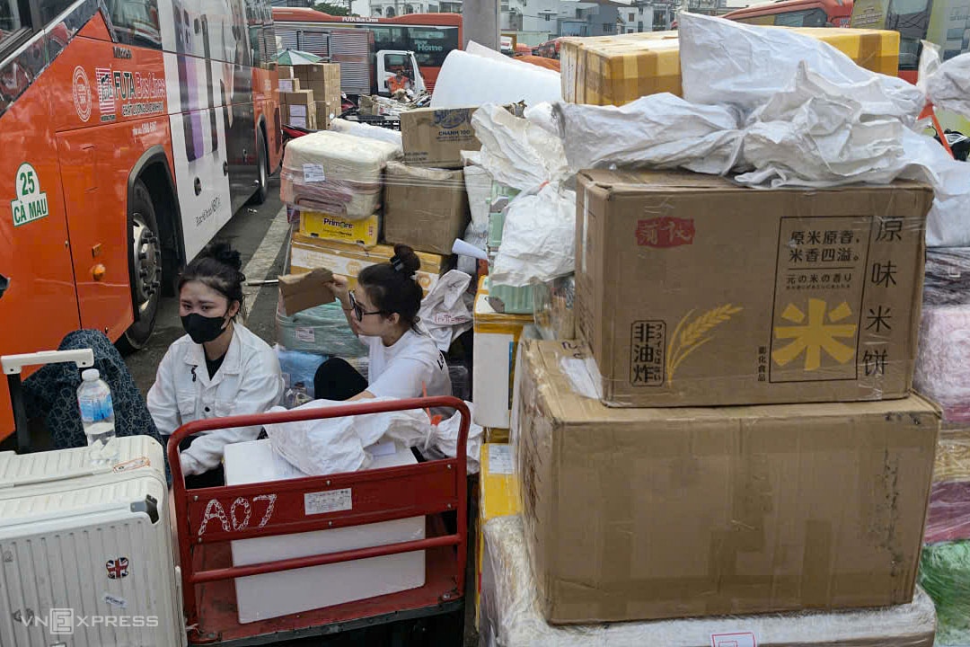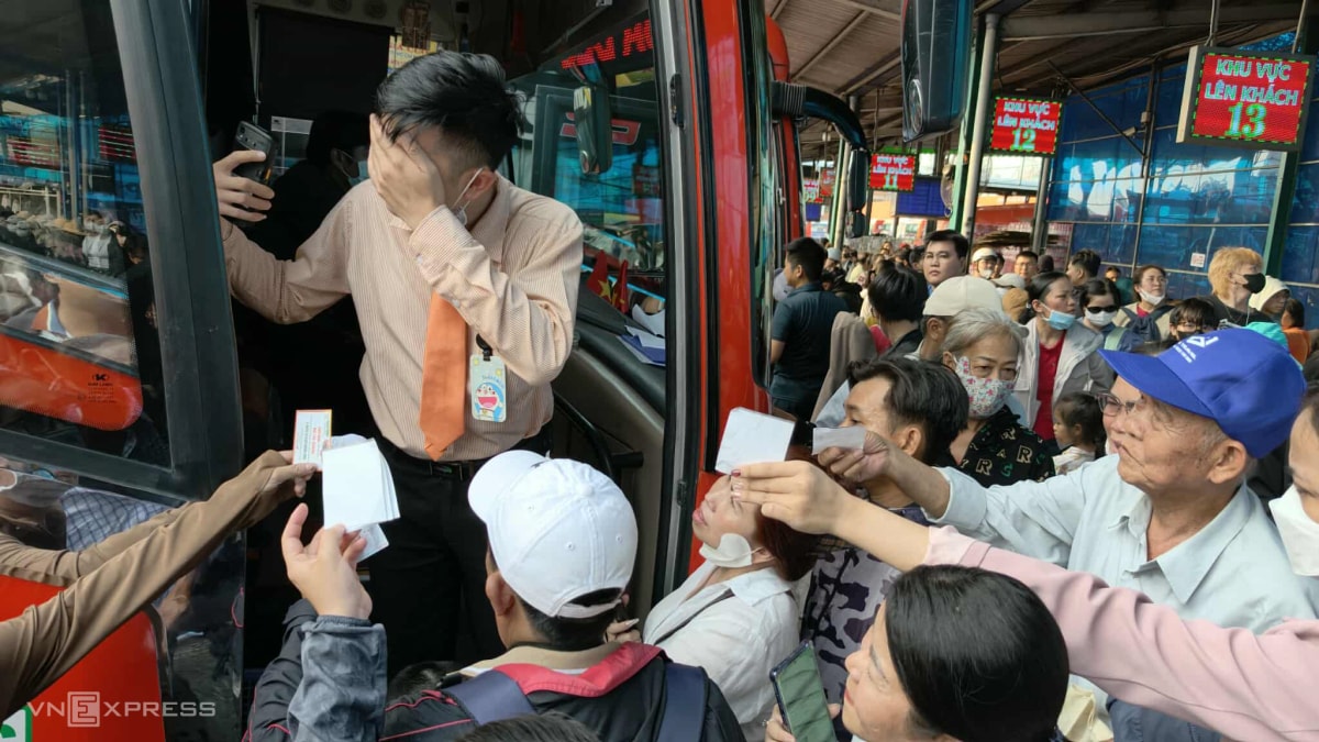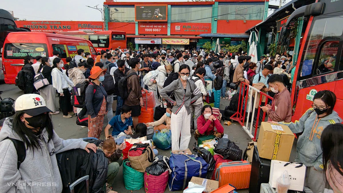 Chiều 12/2 (25 tháng Chạp), hàng nghìn người ken đặc khu vực lên xe ở Bến xe Miền Tây chờ đến giờ khởi hành về quê đón Tết, nhiều khách phải chờ 4-5 giờ.