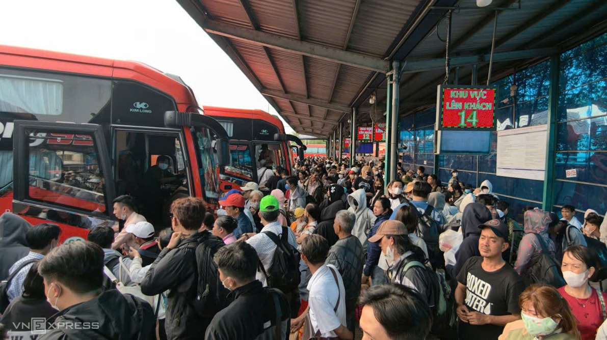 Hàng nghìn người chen lấn ở bến xe để về quê