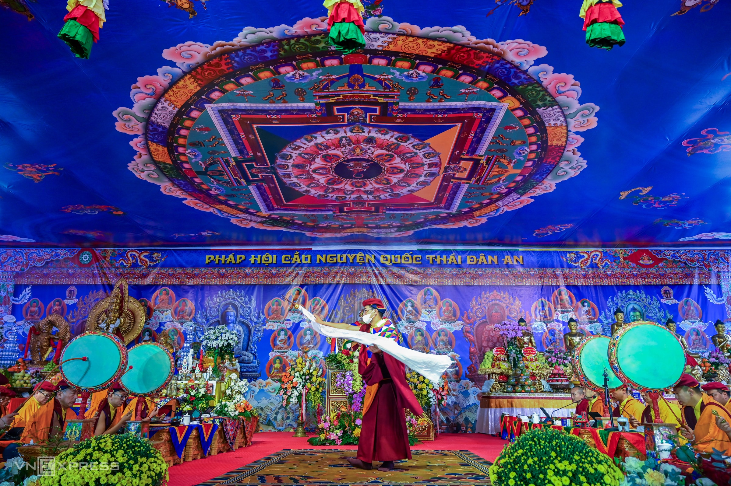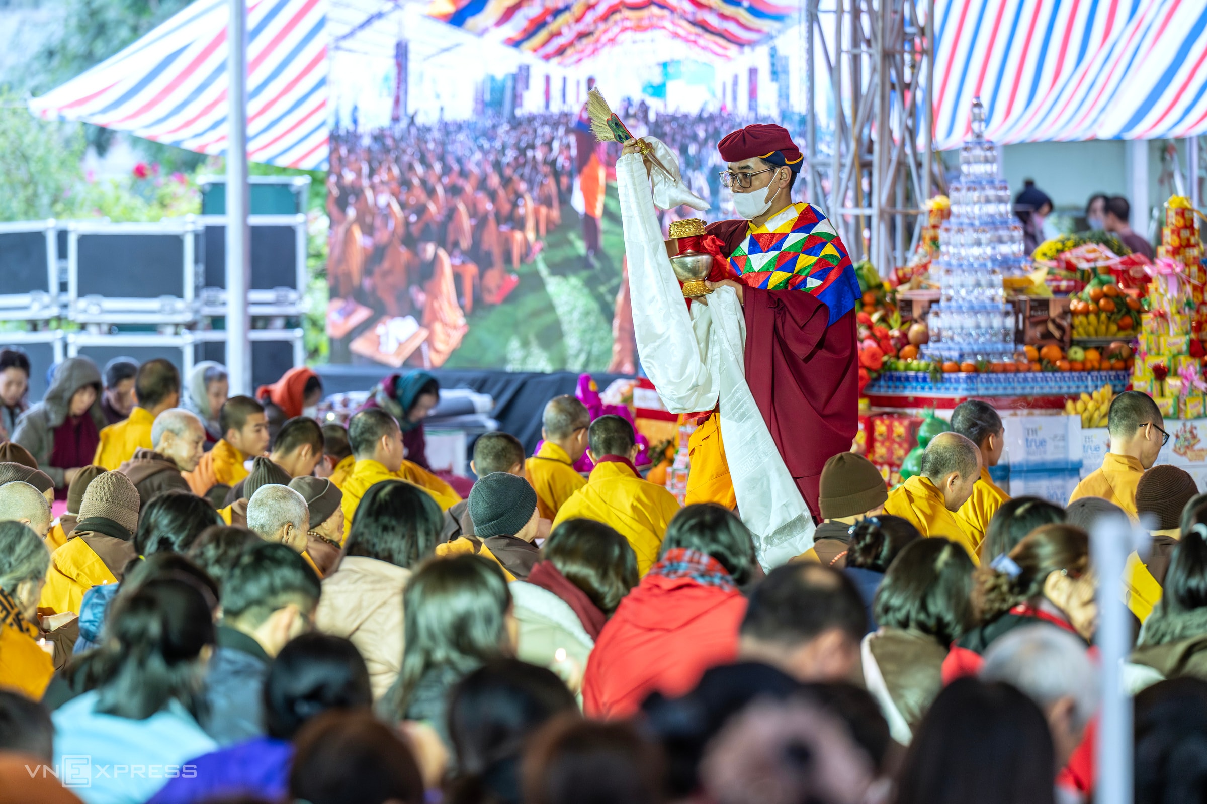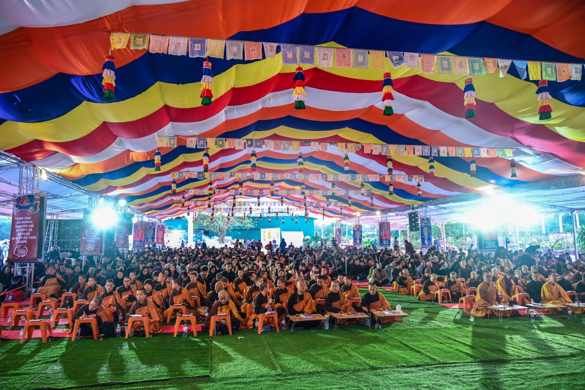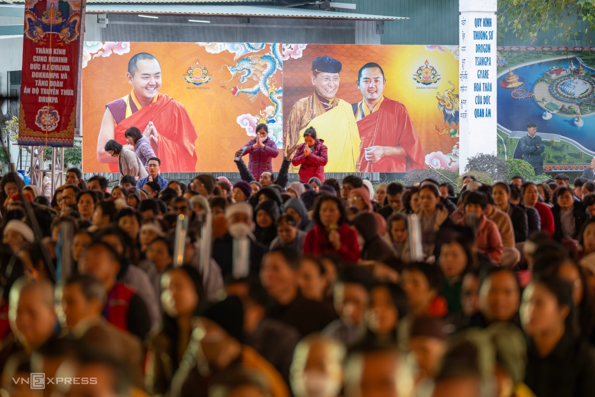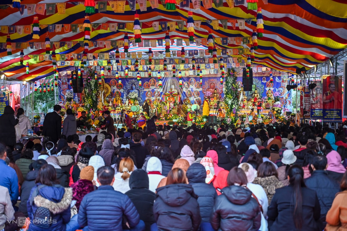 Trong ngày rét đậm đầu tiên năm 2026, nhiệt độ giảm còn 15 độ C, hàng nghìn người có mặt tại đàn tràng Pháp hội Mandala Tây Thiên dự lễ cầu siêu Jangwa theo nghi thức Phật giáo Kim cương thừa. Pháp hội do tăng đoàn truyền thừa Drukpa chủ trì, tổ chức trong ba ngày từ 31/12/2025 đến 2/1/2026.