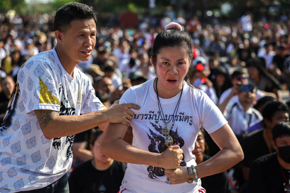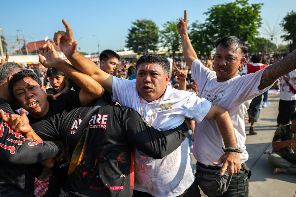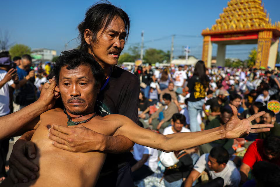 Lễ hội xăm hình truyền thống tại chùa Wat Bang Phra năm nay đón đông đảo người tham dự, nhiều người hú hét, mất kiểm soát khi "lên đồng".