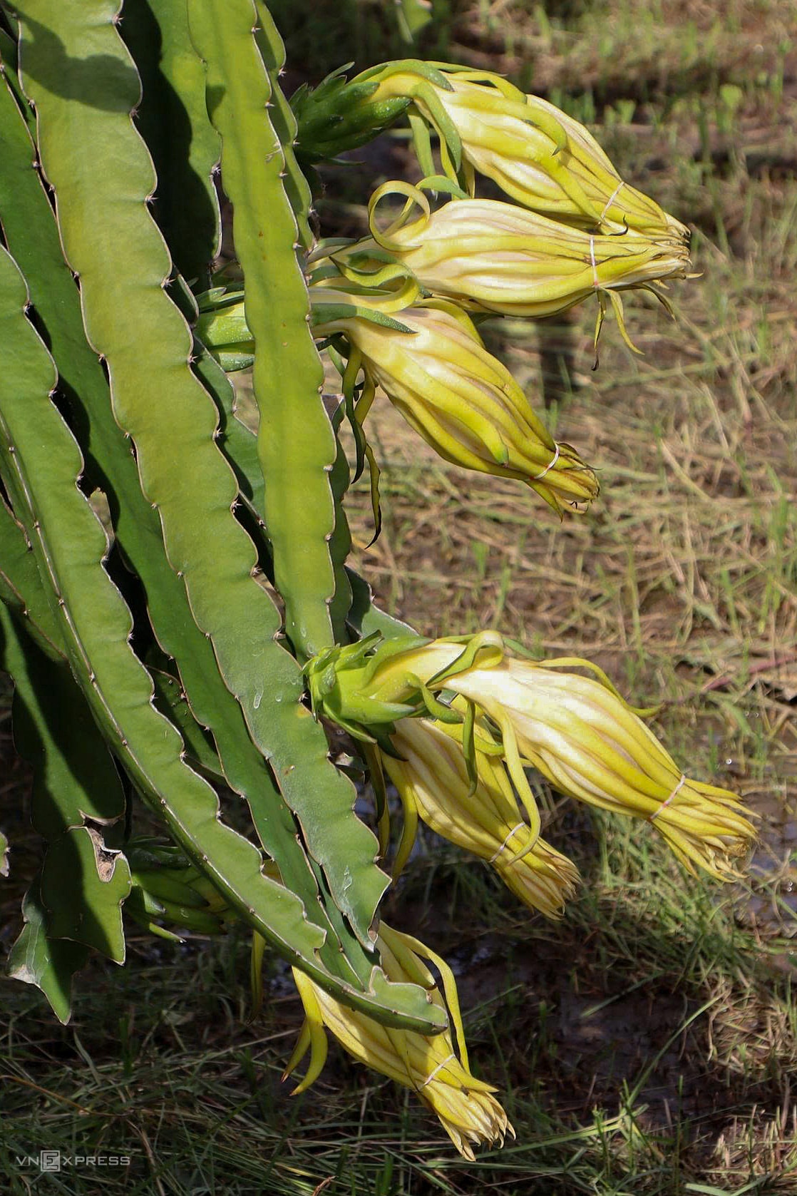 Vườn thanh long của ông Hồng đã ra bông, nhưng theo chủ vườn do thanh long bị no nước, chắc chắn sẽ ảnh hưởng đến chất lượng trái.