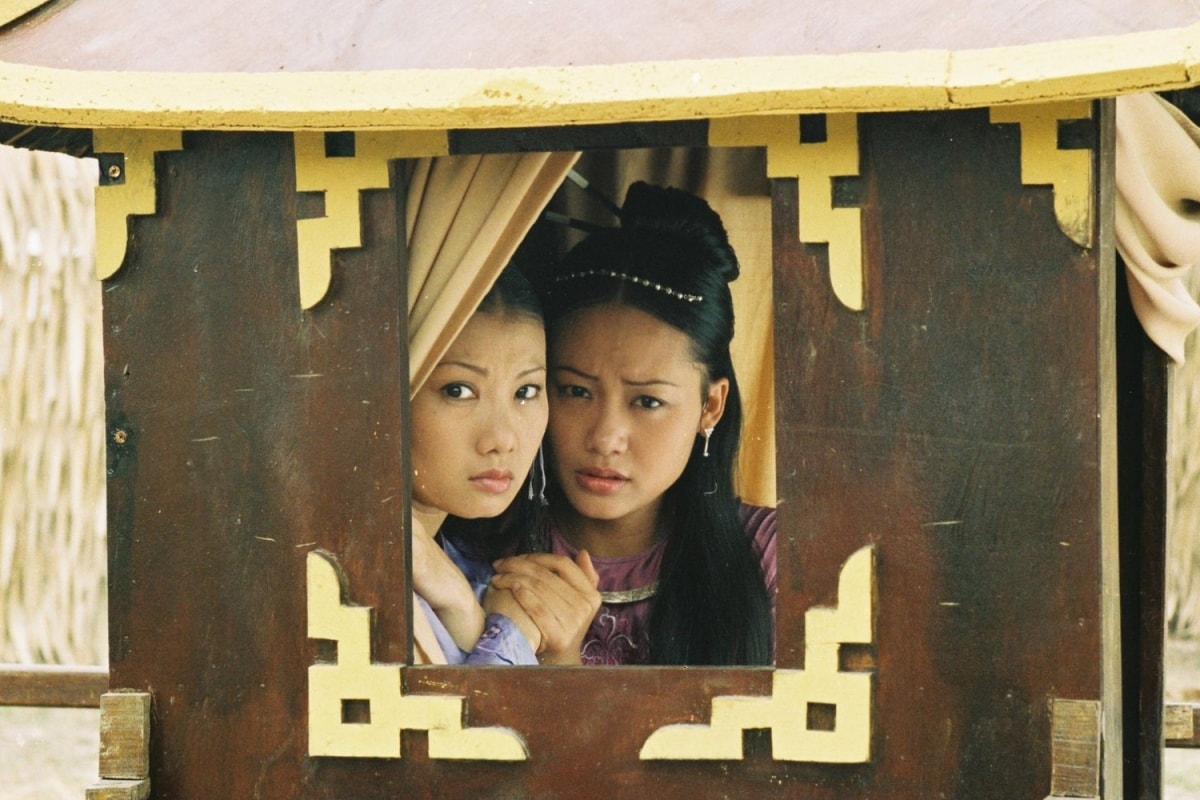 Diễn viên Hồng Ánh trong trẻo ở tuổi đôi mươi, Kim Thư mạnh mẽ với vai đả nữ, trong hậu trường "Lục Vân Tiên" thập niên 2000.
