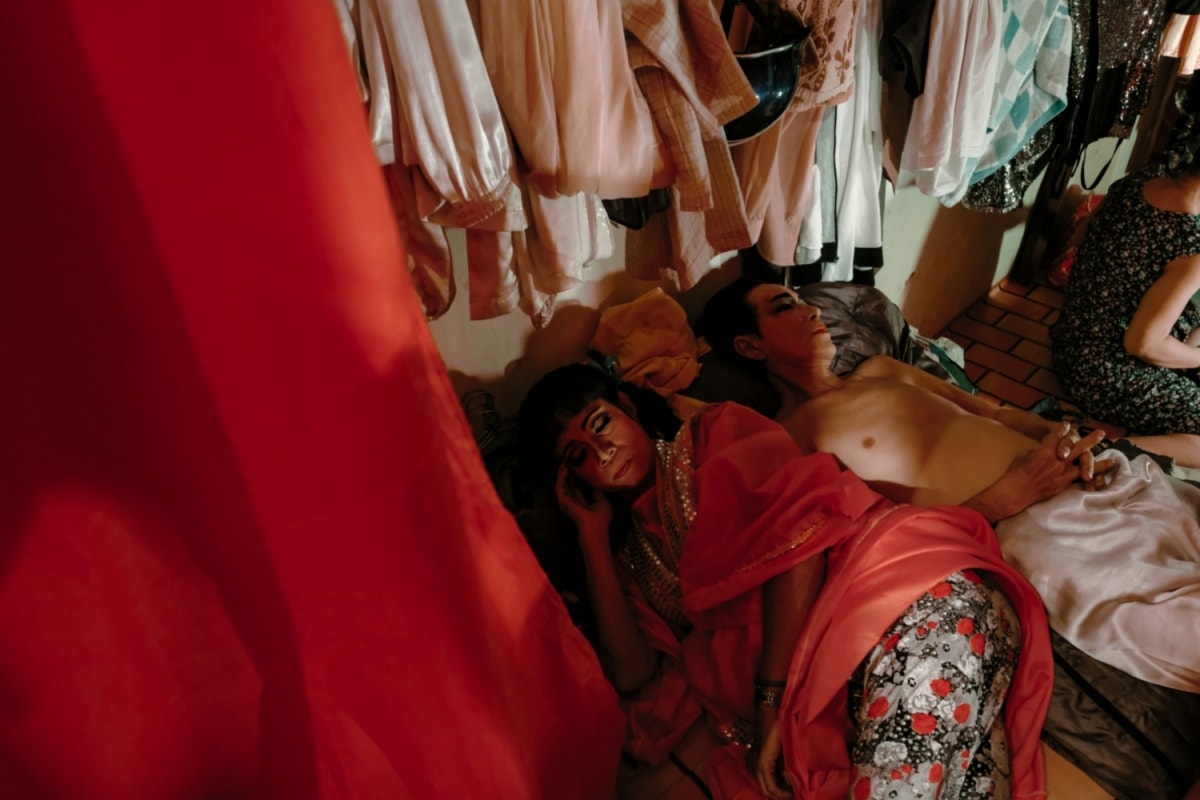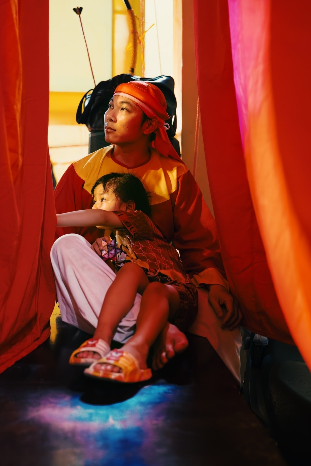 Những kép lão, kép phụ nghỉ ngơi sau bức màn nhung. Nhiếp ảnh gia thực hiện bộ ảnh để gửi gắm tình yêu cổ nhạc, tôn vinh một loại hình nghệ thuật truyền thống đang dần mai một.