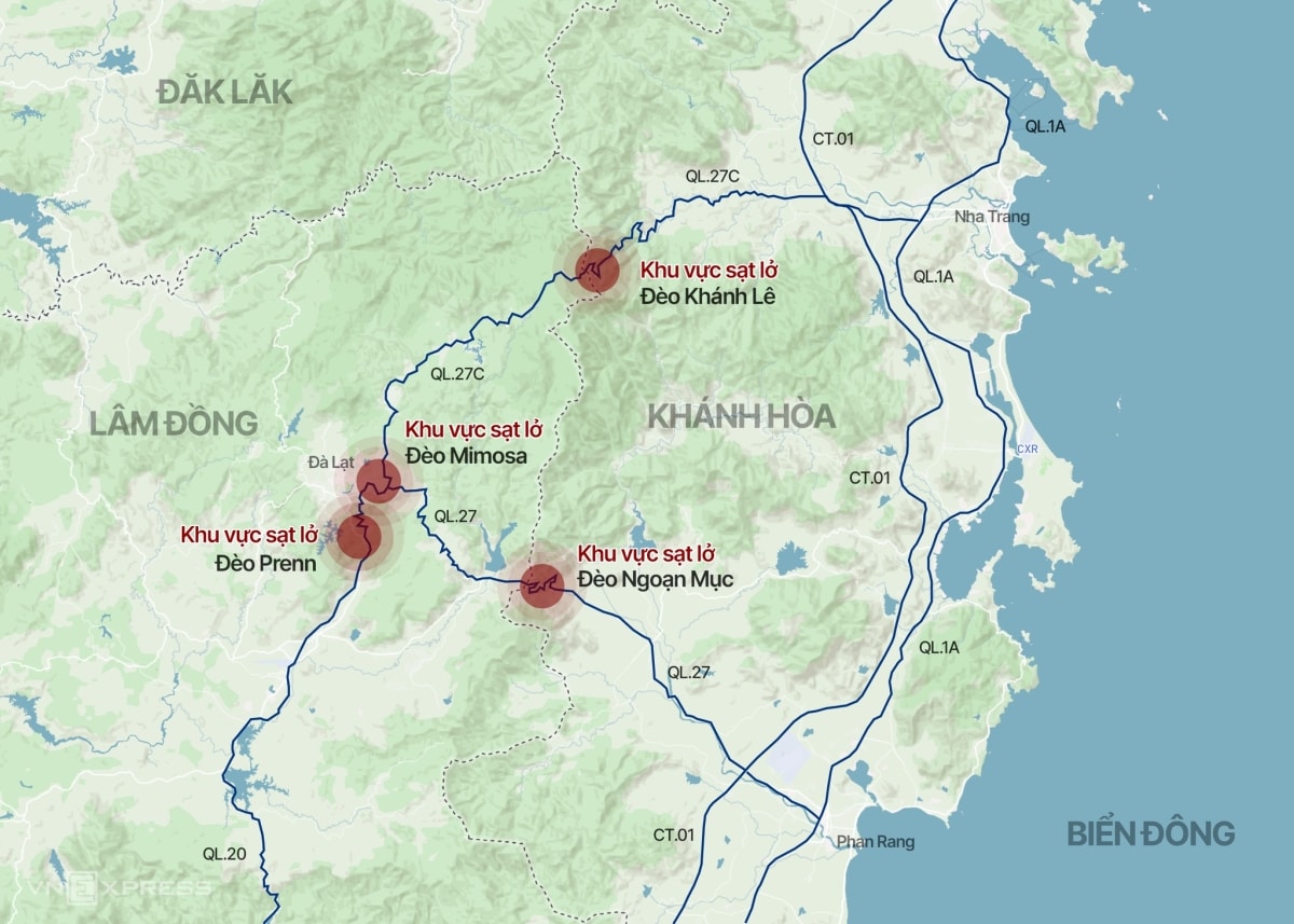 Hiện trạng đèo Mimosa bị xé toạc, chia cắt giao thông