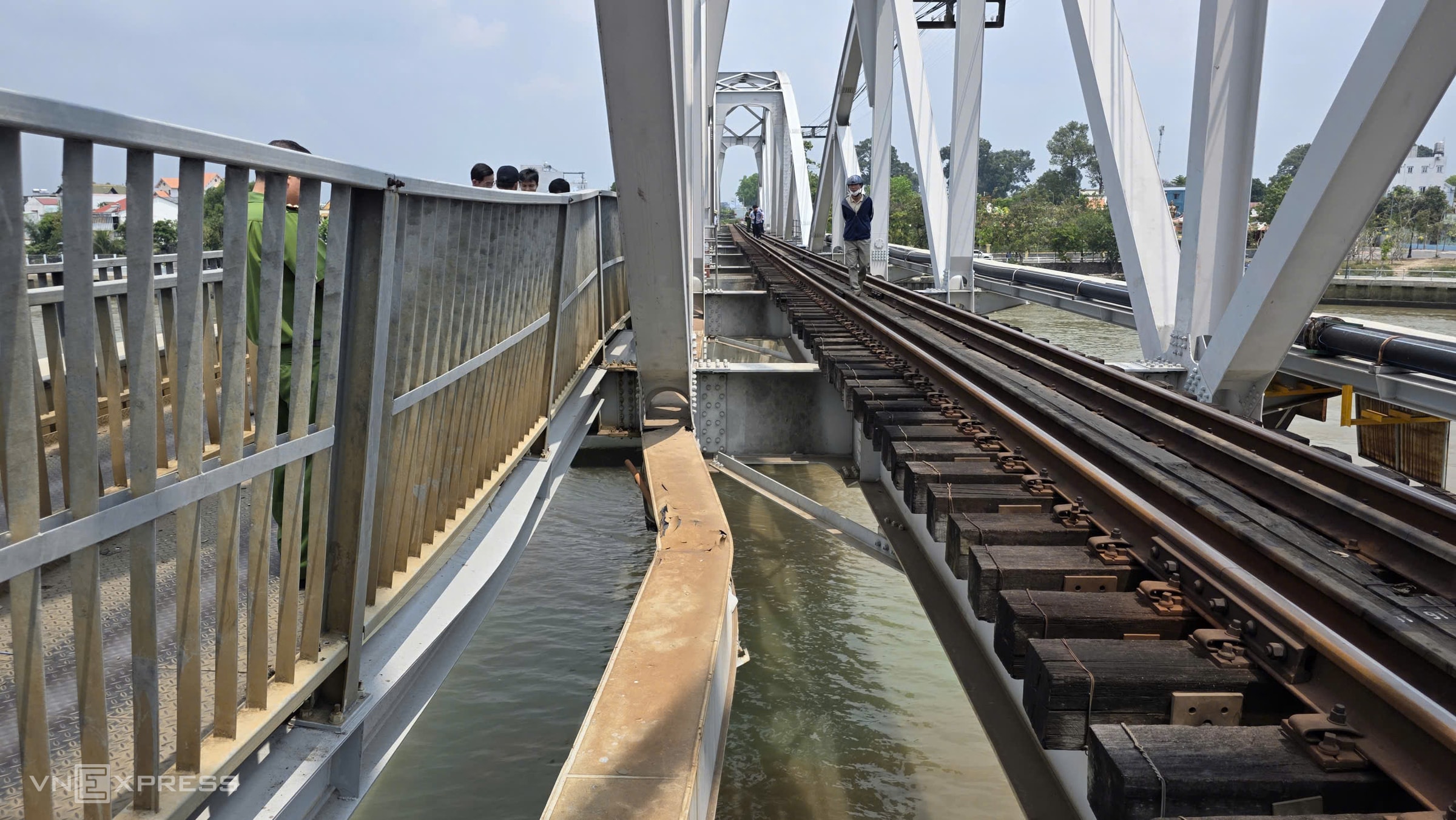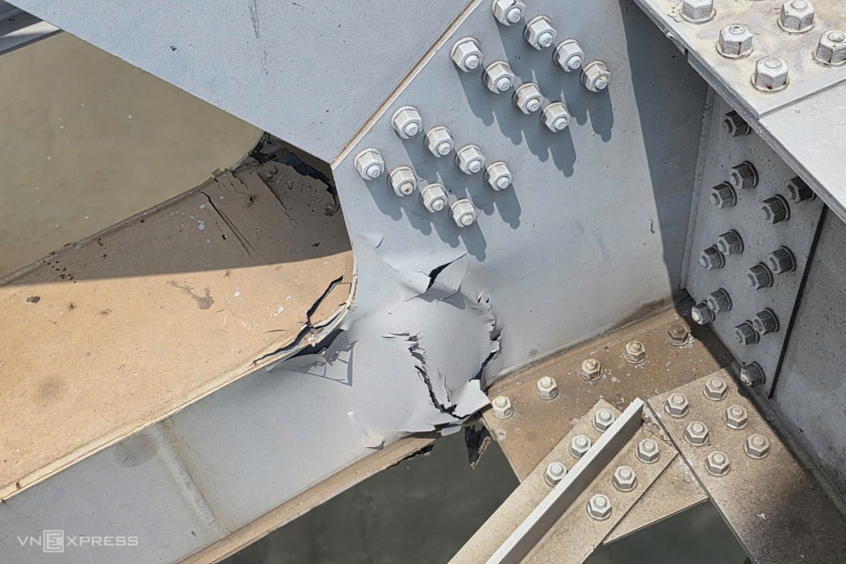Sau va chạm, dầm cầu Ghềnh bị uốn cong, nhiều người đi xe máy bị thương, đường ray lệch khiến tuyến đường sắt Bắc - Nam gián đoạn, sáng 6/3.