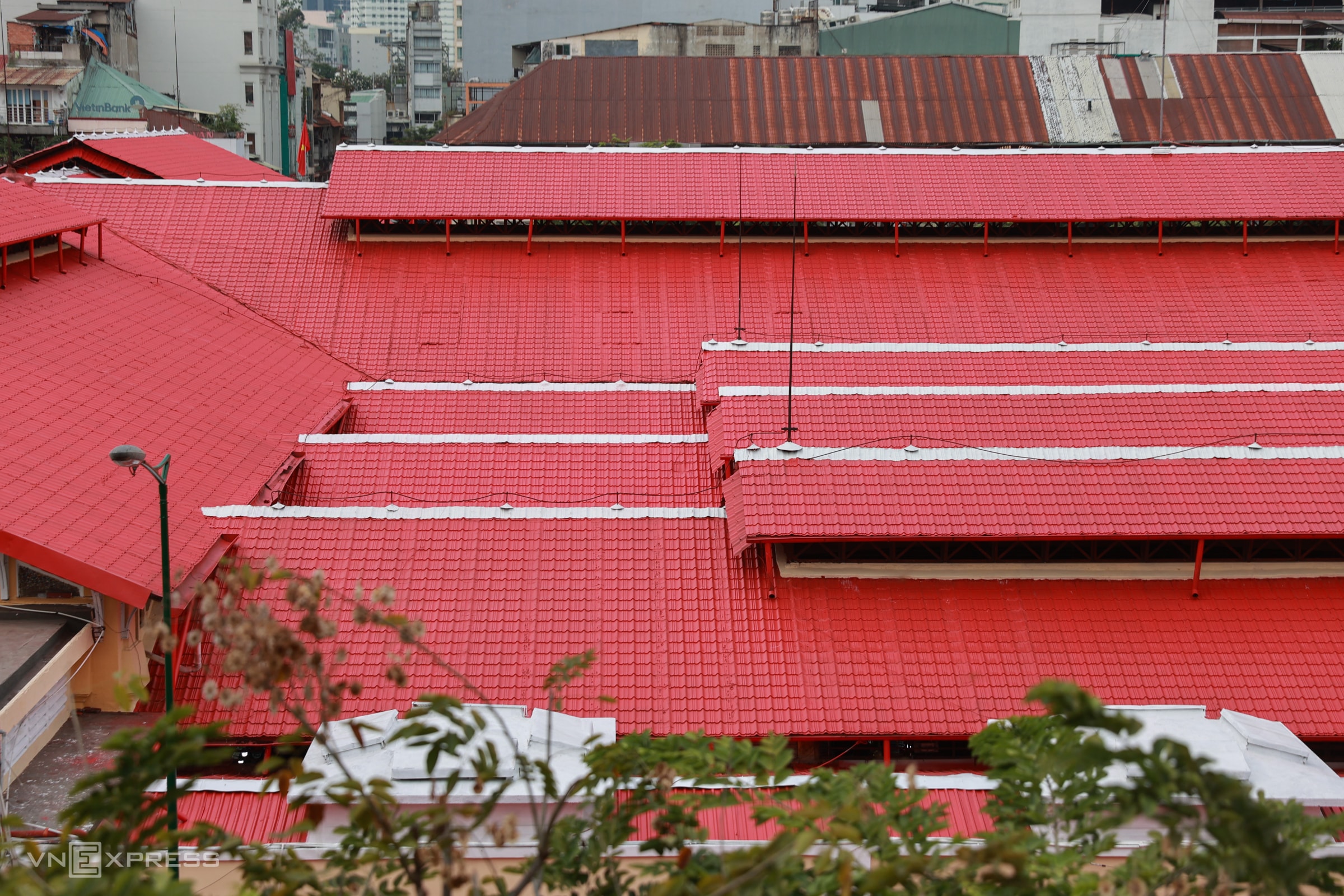 Phần mái ngói chợ được sơn lại đỏ rực so với màu cũ trước đây. Việc chỉnh trang tổ chức thi công cuốn chiếu, ưu tiên giữ nguyên kiến trúc đặc trưng của chợ.