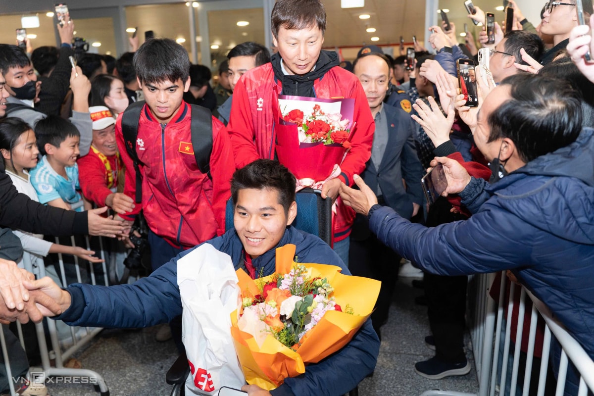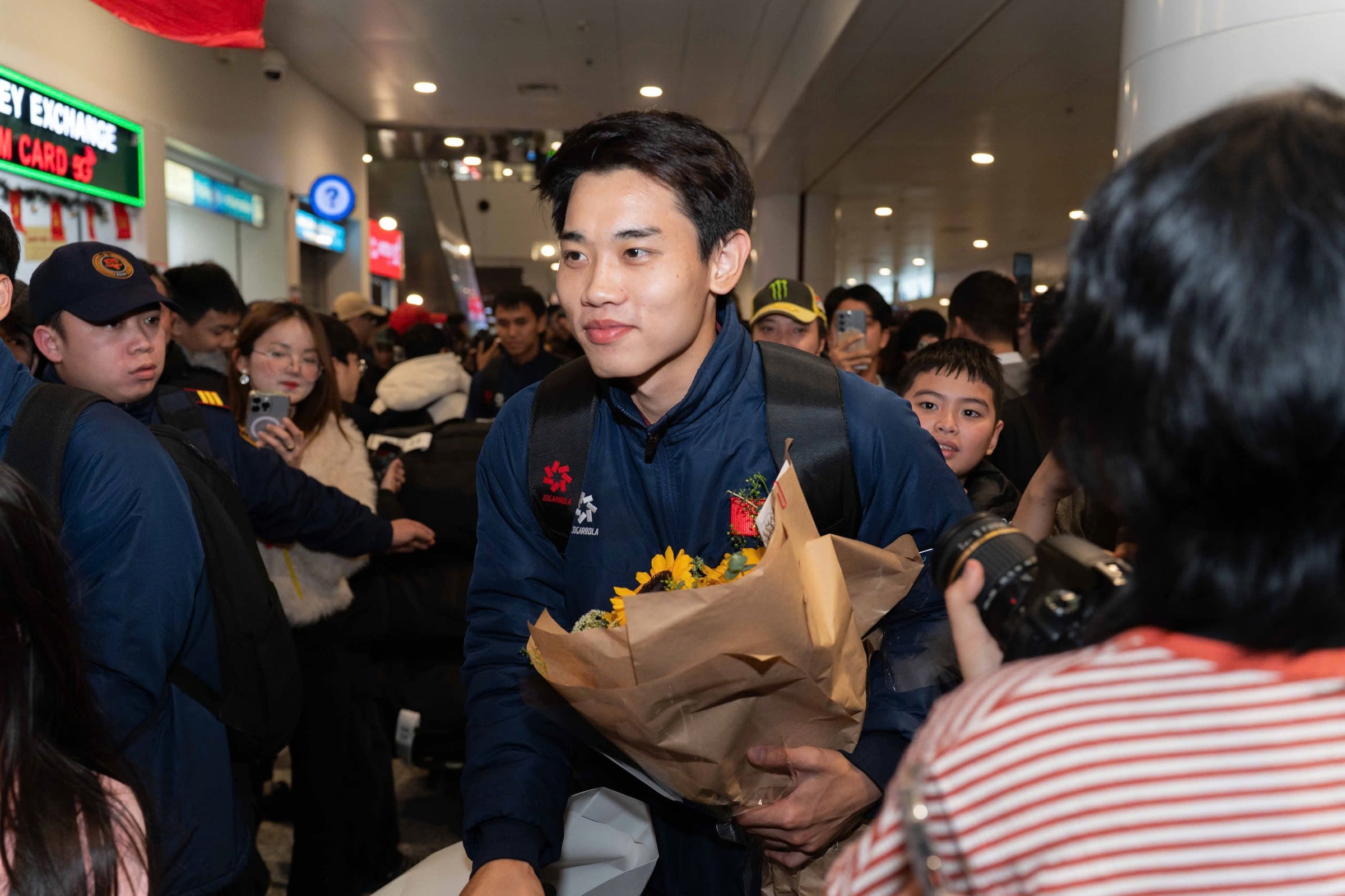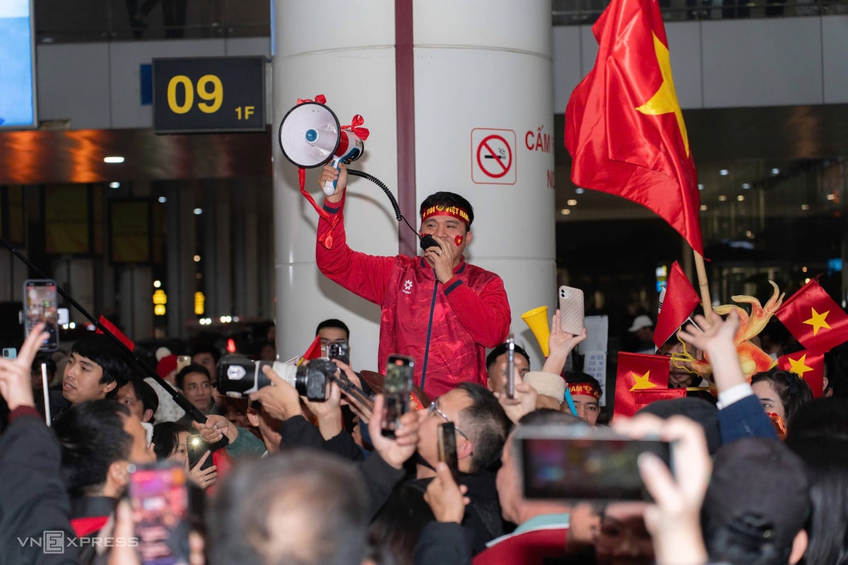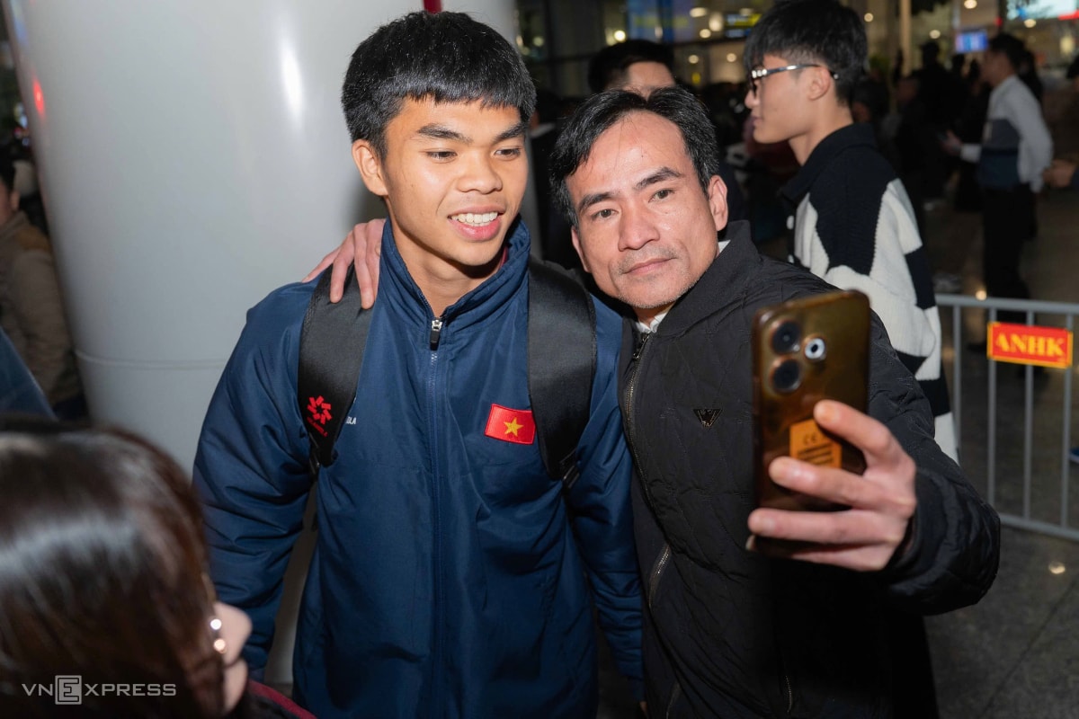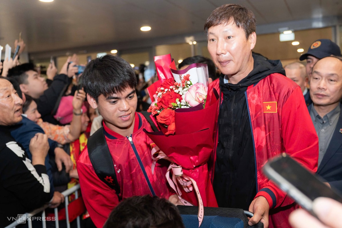 Trở về từ giải U23 châu Á 2026, HLV Kim Sang-sik cùng hàng trăm CĐV hoà nhịp hát "Như có Bác trong ngày đại thắng".