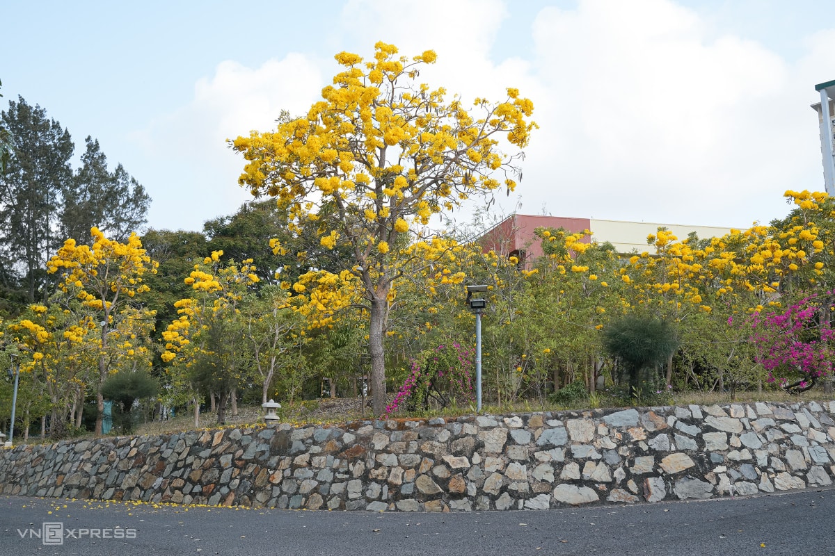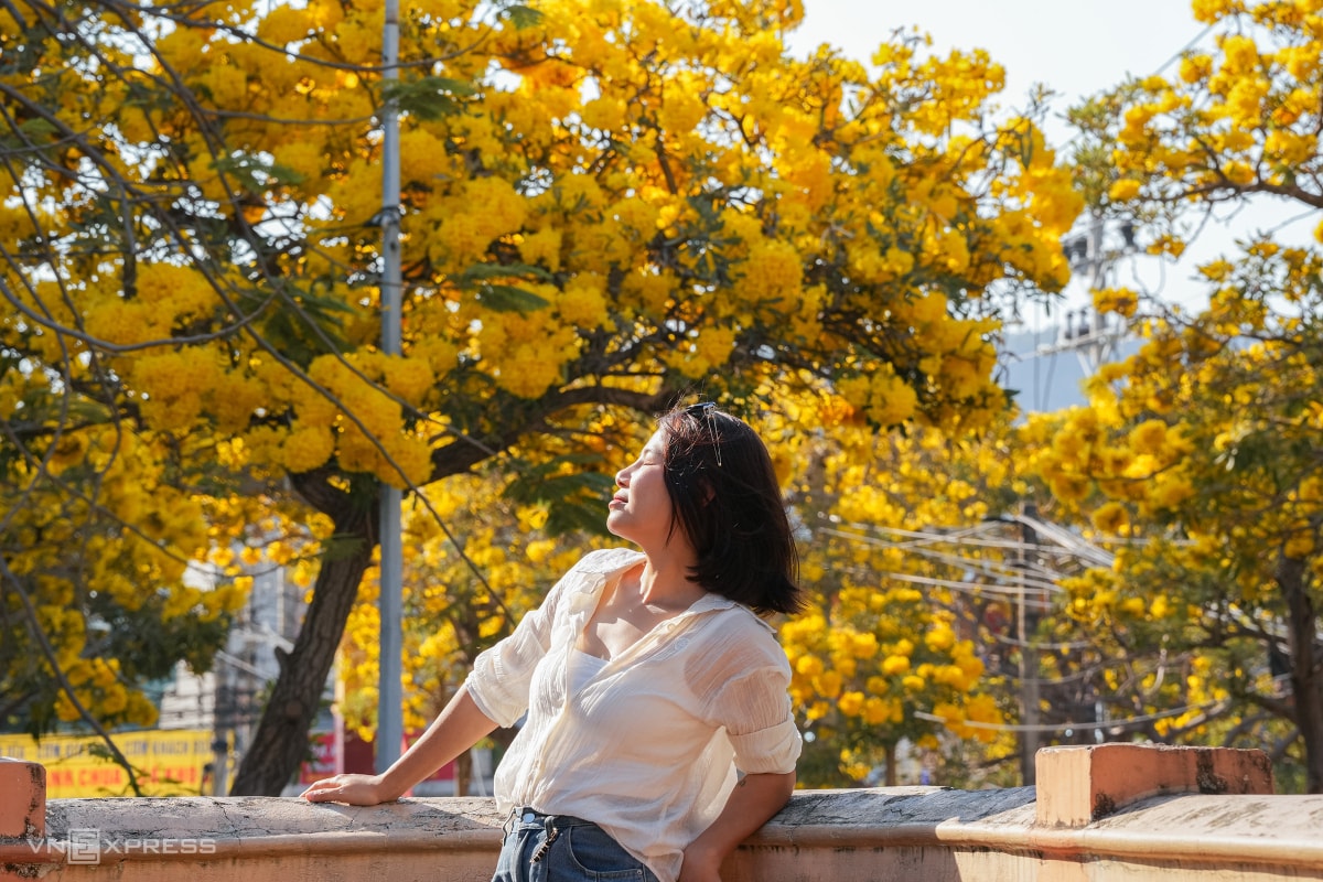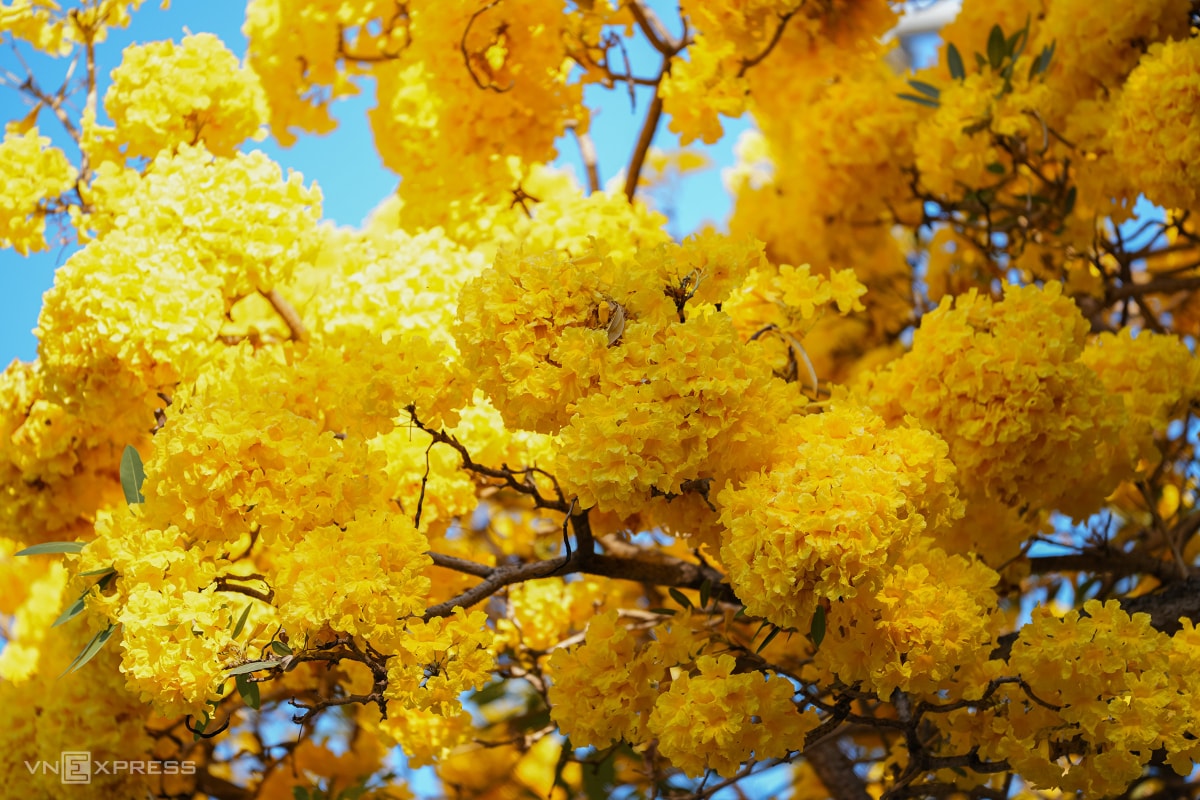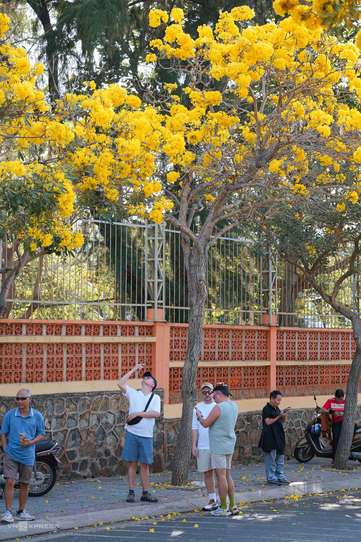 Hàng hoa chuông trồng hai bên đường Trần Quý Cáp, phường Vũng Tàu nở vàng rực, tạo nên cảnh sắc cuốn hút người dân và du khách giữa tháng 3.