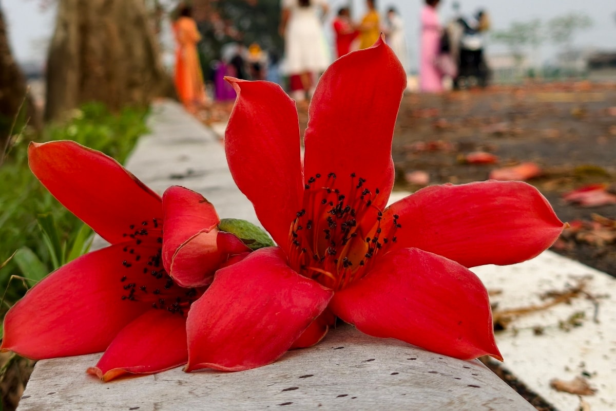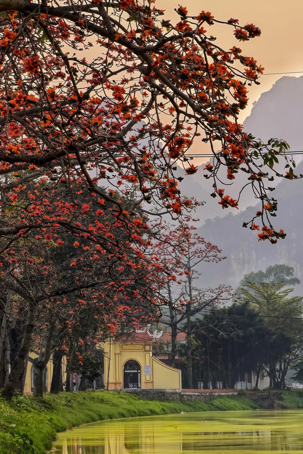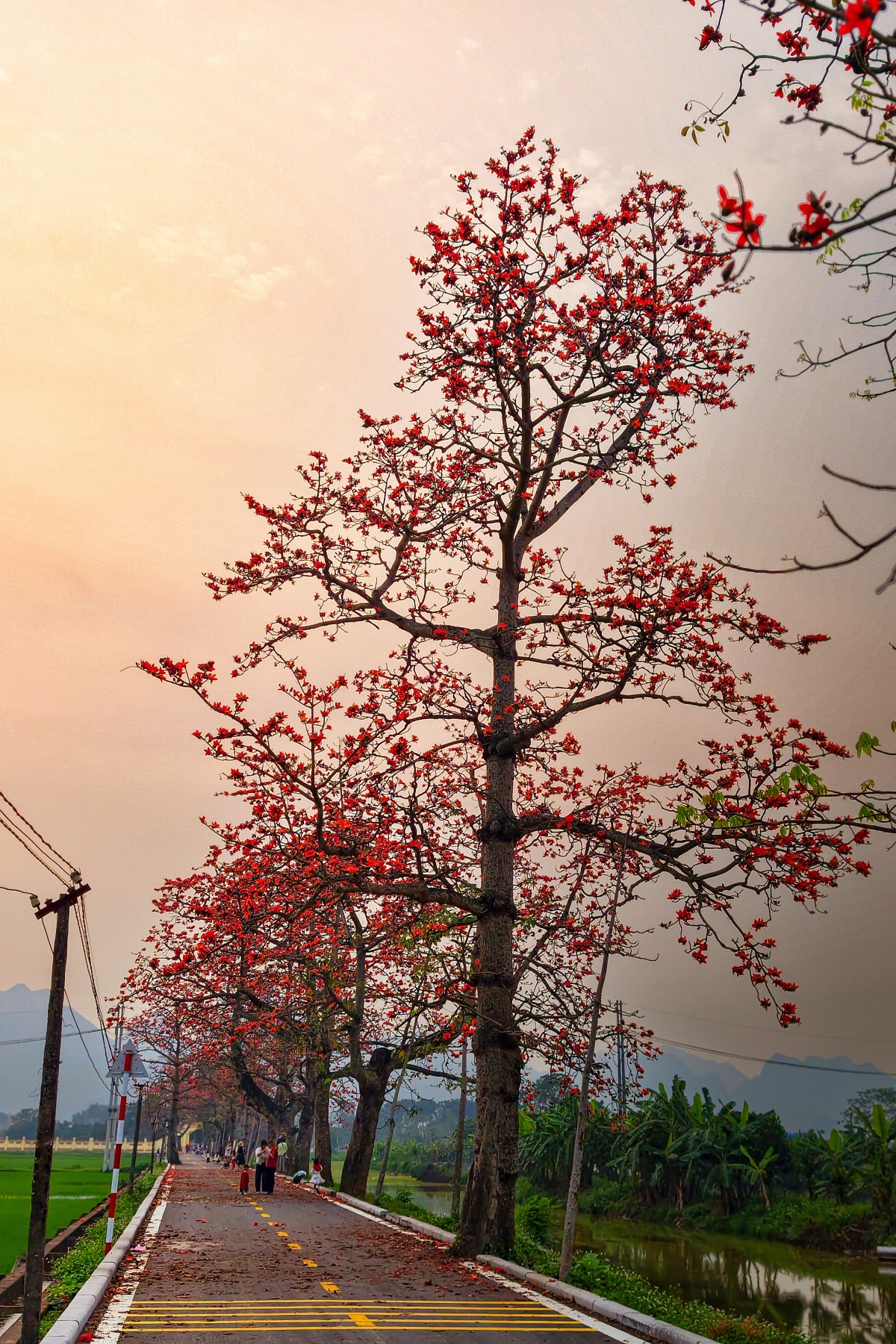 Hoa gạo bung nở nhuộm đỏ vùng quê ngoại thành Hà Nội