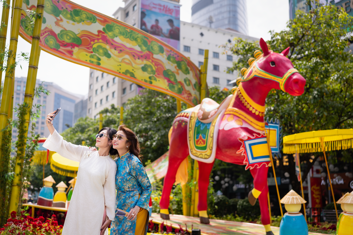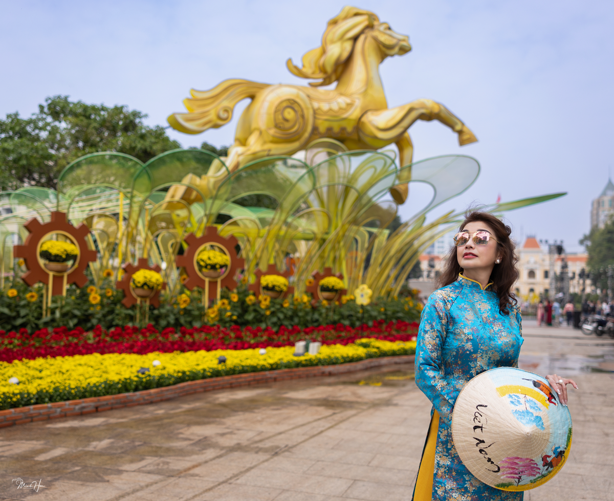 Hoa hậu TP HCM 1989 Lý Thu Thảo lần đầu dạo đường hoa Nguyễn Huệ, dịp từ Mỹ về nước đón Tết.