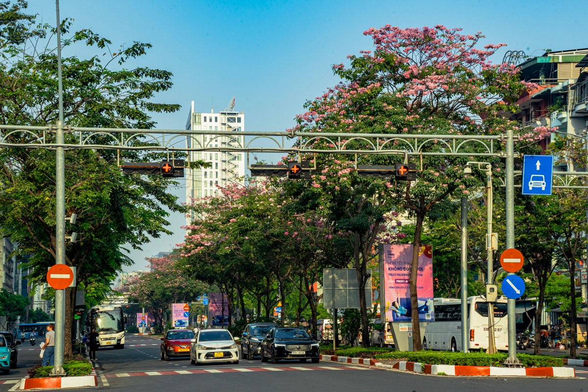 Hoa kèn hồng bung nở khắp tuyến phố Sài Gòn