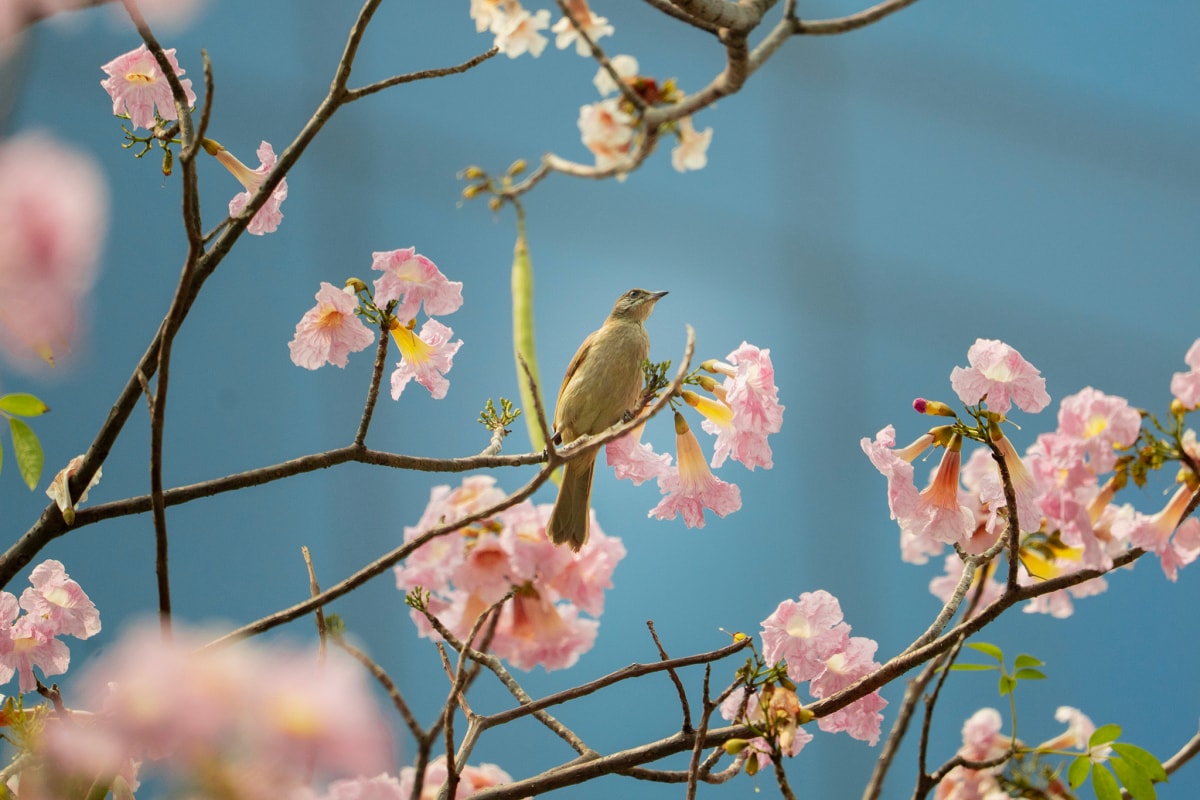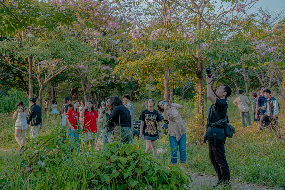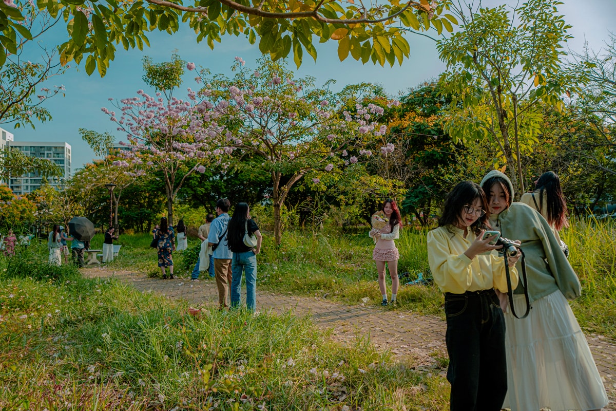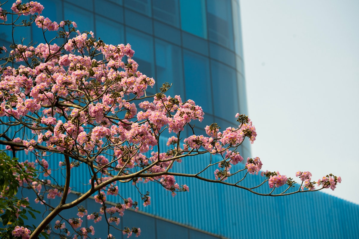Hoa kèn hồng nở rộ những ngày đầu tháng 3 trên nhiều đường phố ở TP HCM , tạo nên khung cảnh được nhiều người ví như "mùa anh đào" giữa lòng Sài Gòn.