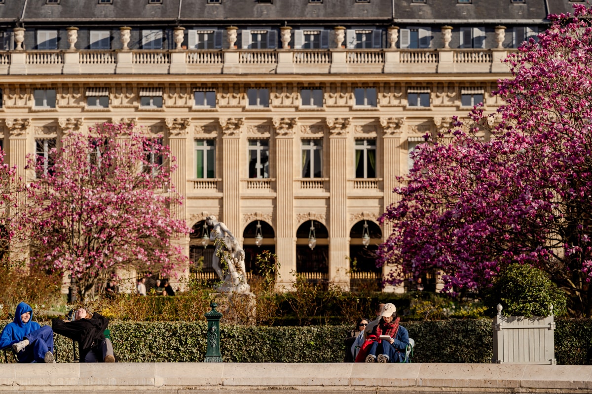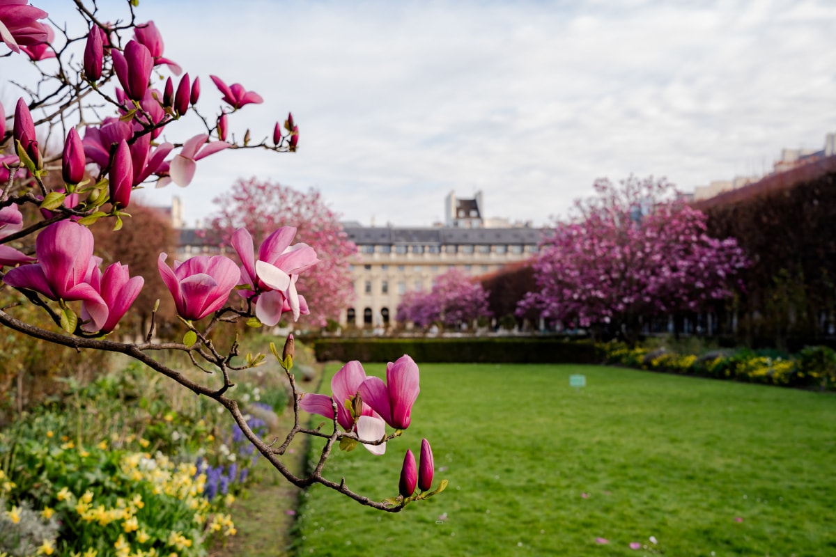 Jardin du Palais-Royal (Vườn Hoàng gia) là một trong những địa điểm ngắm hoa mùa xuân lãng mạn và nổi tiếng ngay trung tâm Paris, cách bảo tàng Louvre khoảng 450 m.