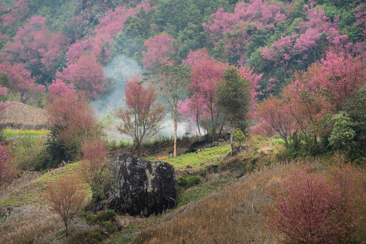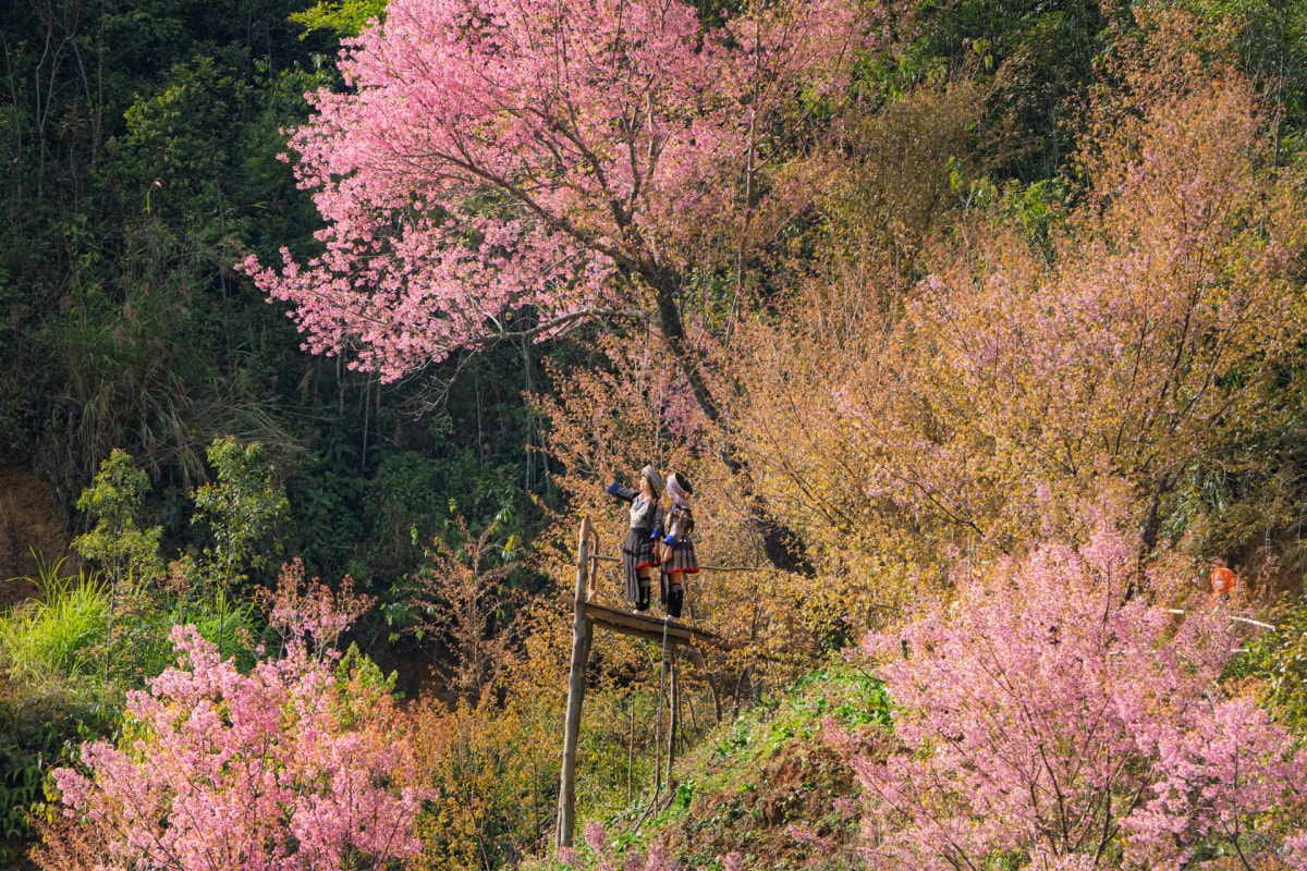 Hoa tớ dày bung nở rực rỡ trên khắp các sườn núi tại Mù Cang Chải cũng như các bản làng, hút khách đến chiêm ngưỡng những ngày đầu năm.