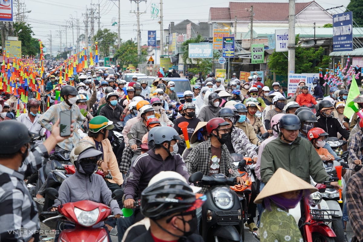 Hàng nghìn người hóa trang thành "yêu quái" mang theo kèn, súng phun nước xuống đường ăn mừng lễ hội, khiến nhiều đoạn tỉnh lộ ùn tắc.