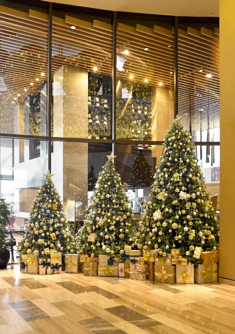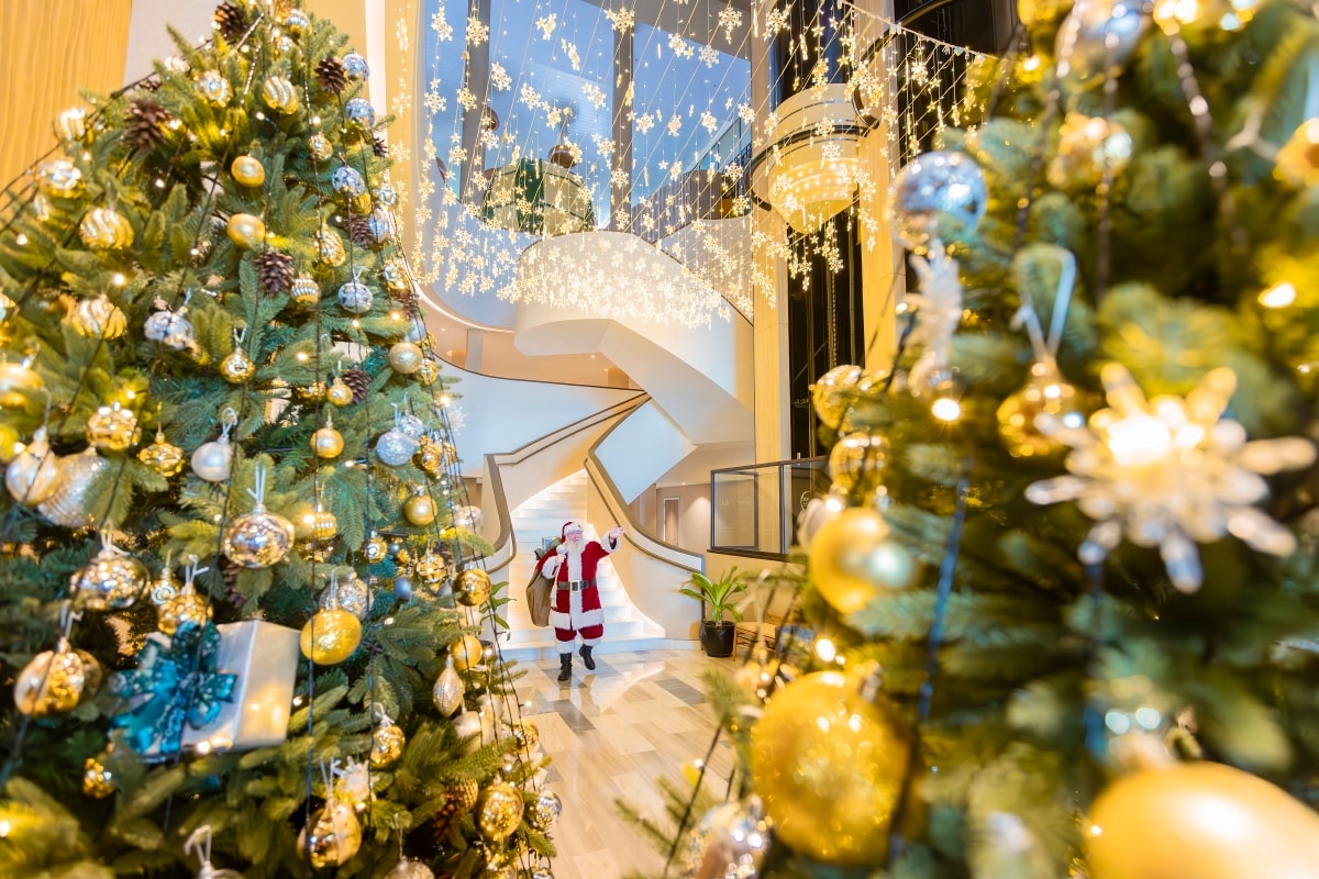 Khu nghỉ dưỡng mở đầu mùa lễ hội bằng lễ thắp sáng cây thông Noel ngay sảnh chính. Tiểu cảnh được bày trí theo phong cách Giáng sinh miền biển với san hô, vỏ sò và tông vàng ánh kim. Mỗi tối, dàn hợp xướng thiếu nhi Phú Quốc sẽ cùng hòa giọng tại đây, mang đến những giai điệu Giáng Sinh quen thuộc.