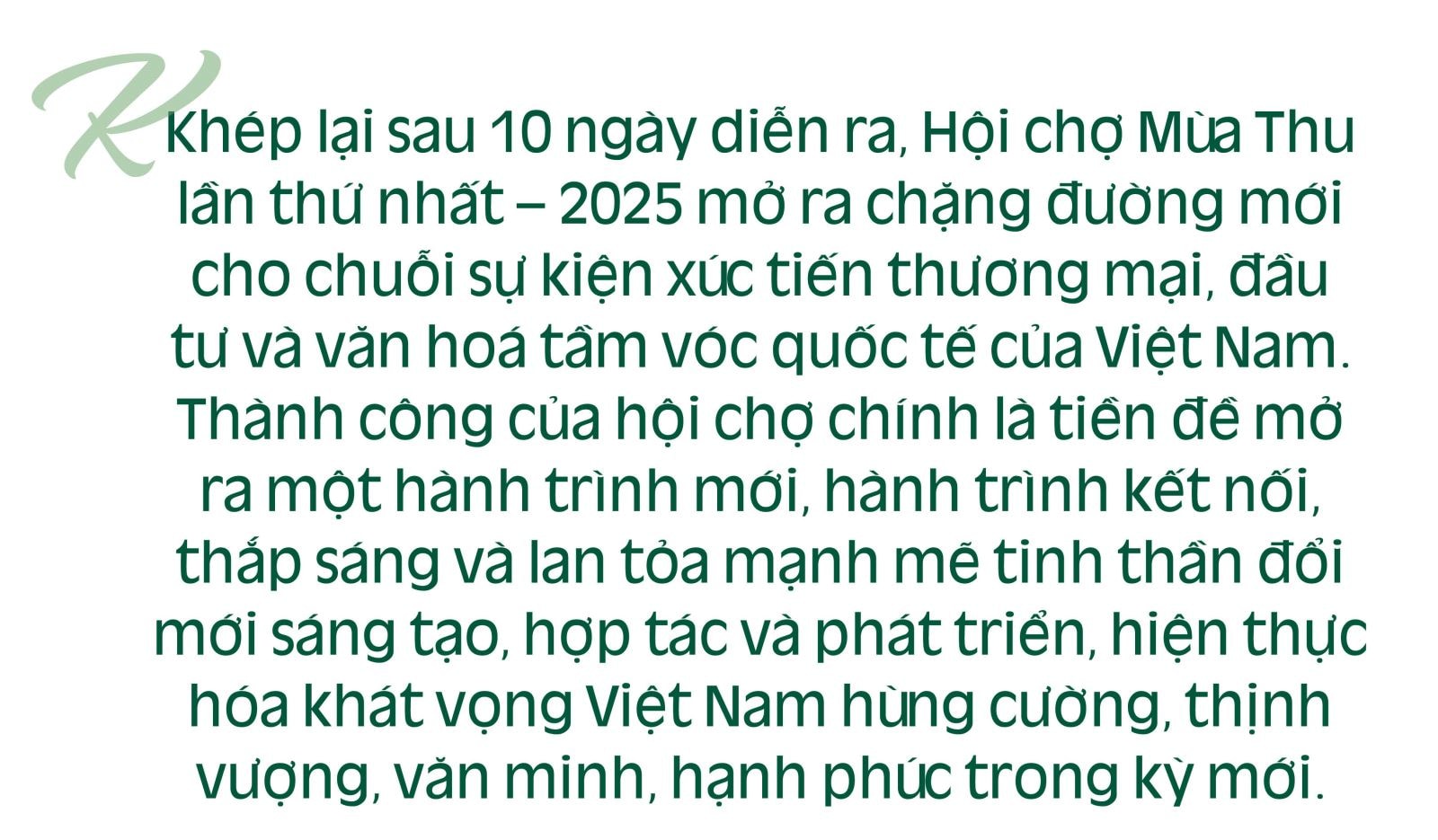 Khép lại sau 10 ngày diễn ra, Hội chợ Mùa Thu lần thứ nhất – 2025 mở ra chặng đường mới cho chuỗi sự kiện xúc tiến thương mại, đầu tư và văn hoá tầm vóc quốc tế của Việt Nam.
