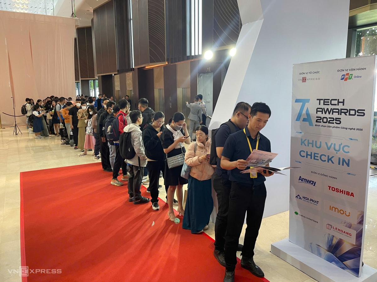 Bắt đầu mở cửa từ 9h, nhưng từ 5h ngày 8/1, hàng trăm người, đặc biệt là các bạn trẻ, đã có mặt tại Thiskyhall Sala Convention Center (TP HCM) xếp hàng dài chờ đăng ký Tech Show với các phiên trình diễn công nghệ trong khuôn khổ Tech Awards 2025. Hầu hết cho biết đã đăng ký trước, nhưng đến sớm để được trải nghiệm sản phẩm công nghệ mới nhất, cũng như check-in nhận quà.