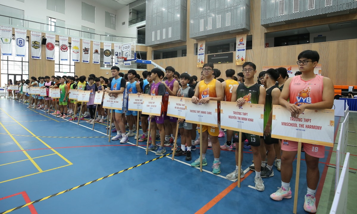 Hơn 100 học sinh, đại diện 36 đội bóng nam, nữ của các trường THPT trên địa bàn Hà Nội tham dự lễ khai mạc giải Bóng rổ Trẻ VnExpress 2025 tại cung Thiếu nhi Hà Nội, cơ sở 2, sáng 2/11.