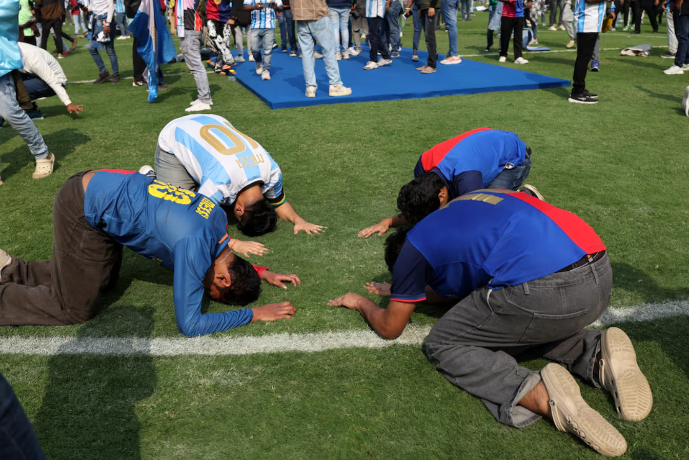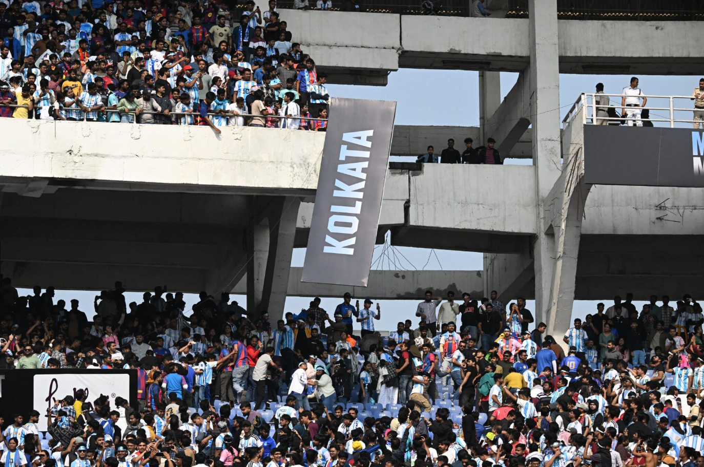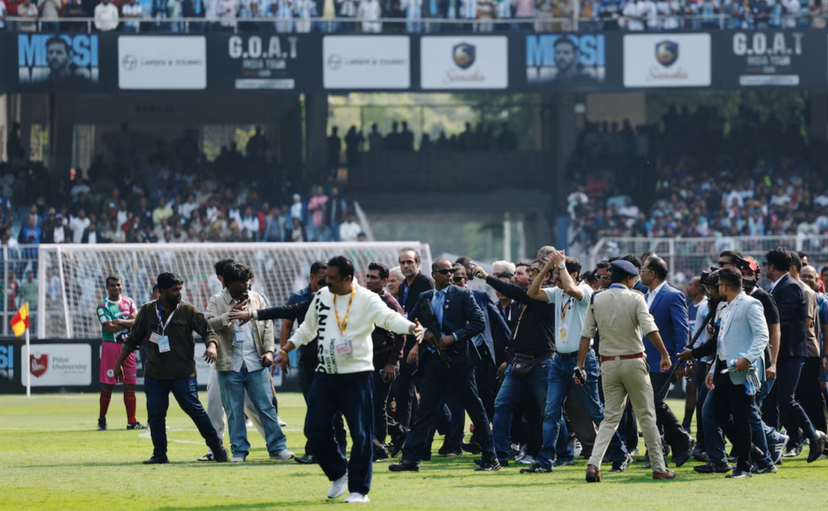 Sự xuất hiện chớp nhoáng của Lionel Messi tại sân Salt Lake, Kolkata kết thúc trong cảnh hỗn loạn khi người hâm mộ tràn xuống sân, phá hoại khán đài và ném ghế về phía mặt cỏ.