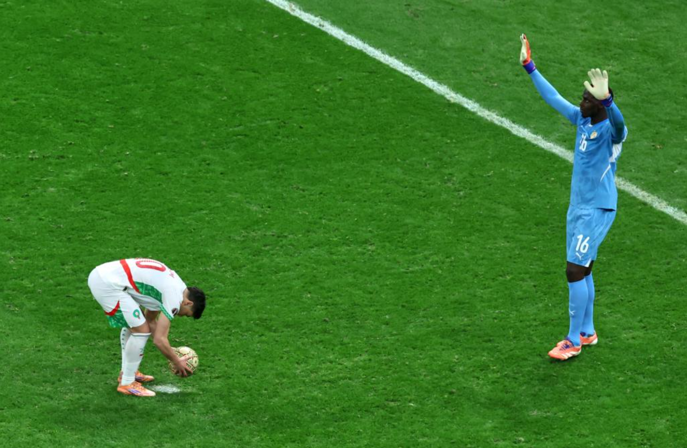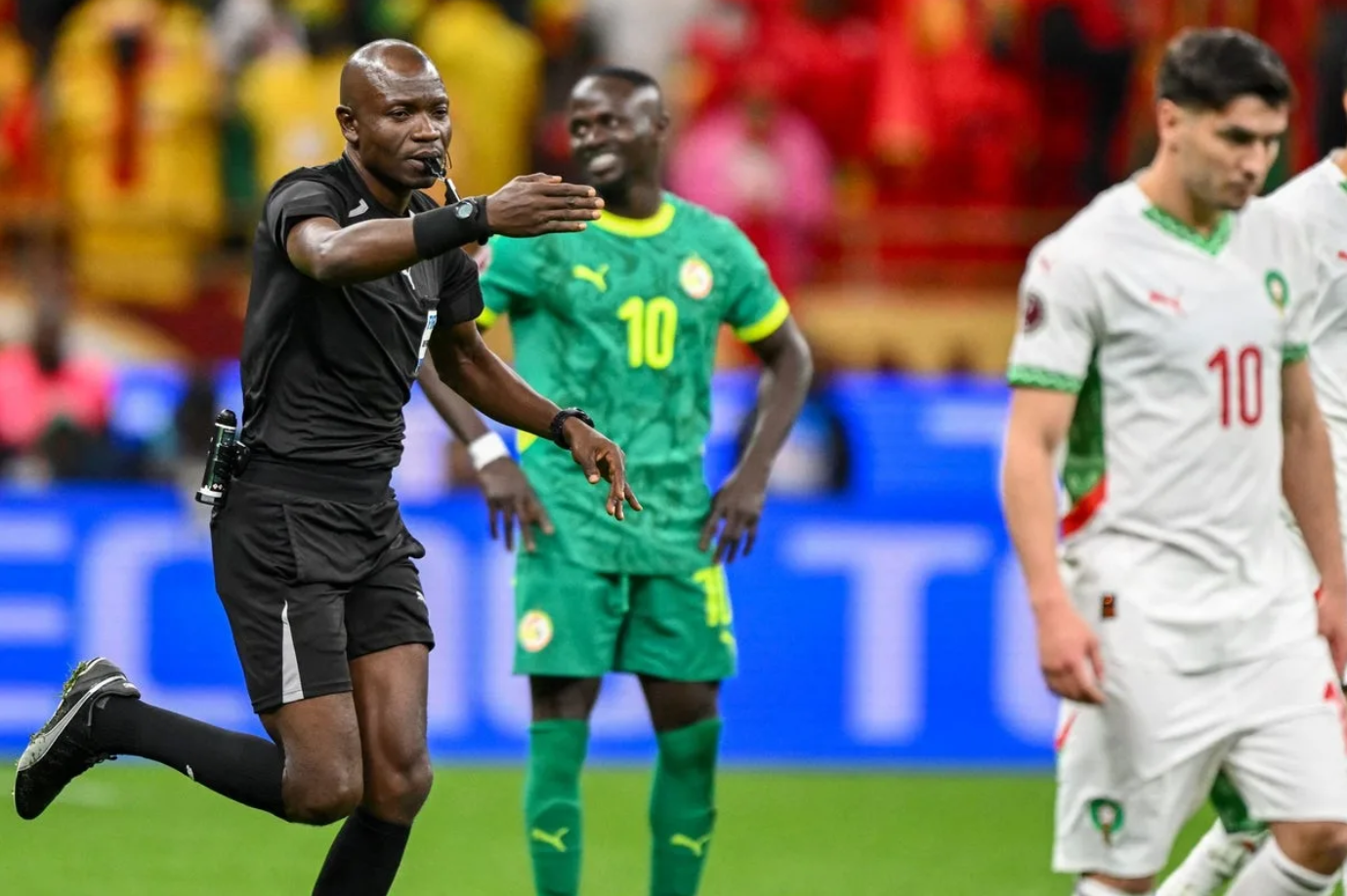Mọi thứ bắt đầu ở phút bù thứ hai. Senegal tưởng như đã kết liễu trận đấu khi Ismaila Sarr đánh đầu tung lưới Morocco. Nhưng trọng tài Jean-Jacques Ndala không công nhận bàn thắng vì cho rằng Abdoulaye Seck phạm lỗi với Achraf Hakimi.