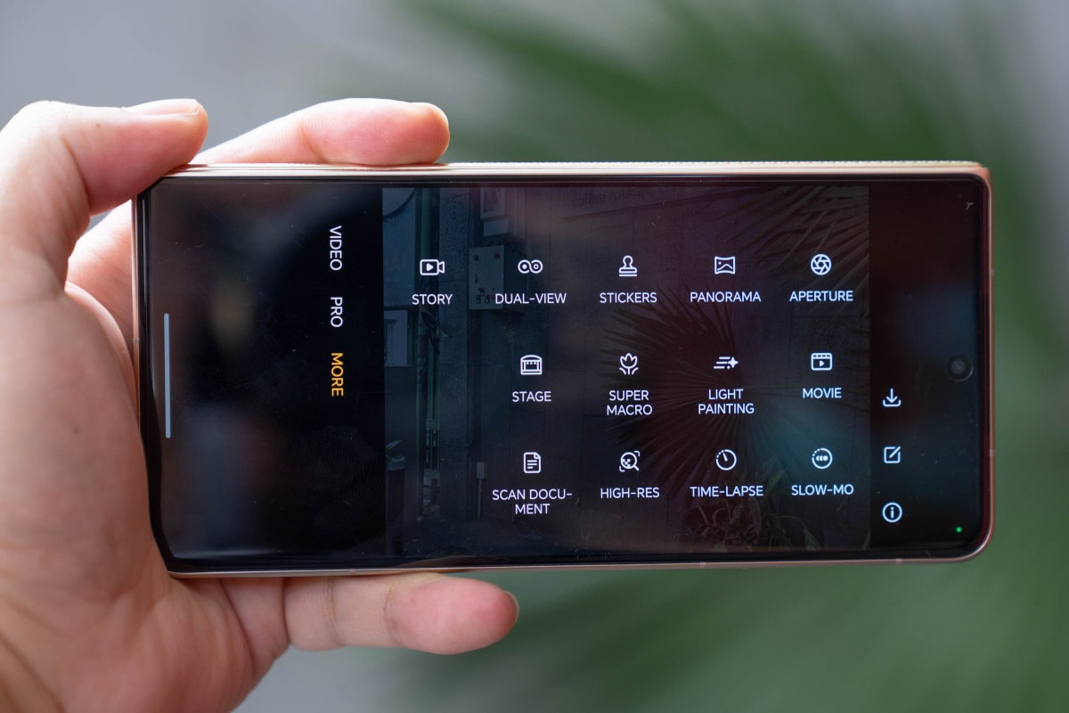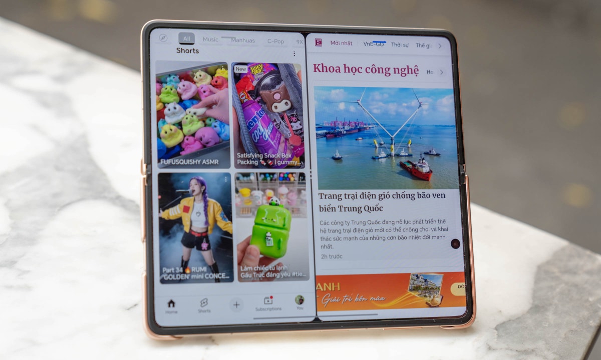 Với cấu hình này, máy chạy đa nhiệm, xử lý tác vụ AI, chơi game mượt. Honor trang bị riêng một nút chạy đa nhiệm trên thanh công cụ ở màn hình trong cho Magic V5, giúp người dùng tận dụng tối đa màn hình và sức mạnh xử lý của máy.