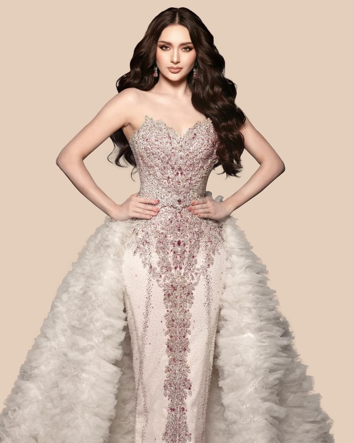 Mỹ nhân 29 tuổi mang hai dòng máu Ấn và Thái - ứng viên hàng đầu cho ngôi vị cao nhất, theo đánh giá của nhiều chuyên gia nhan sắc. Cô là người mẫu, đăng quang Miss Universe Thailand 2025 hồi giữa năm sau ba lần thử sức. Quyết tâm và sự kiên trì của người đẹp tại cuộc thi là câu chuyện truyền cảm hứng cho nhiều cô gái.