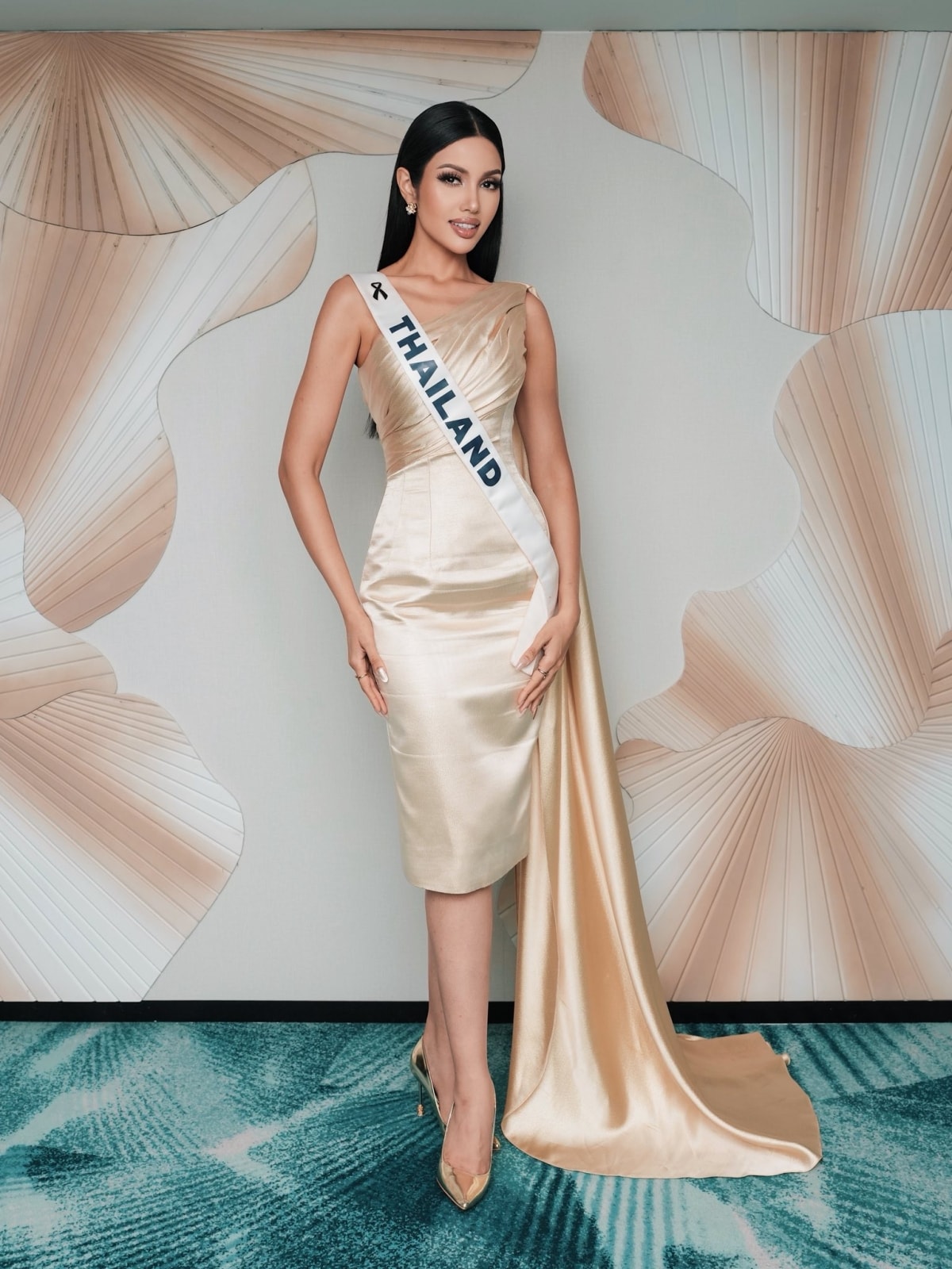 Miss Universe Thailand - Veena Praveenar Singh - tại vòng thi. Cô là ứng viên hàng đầu của khu vực châu Á, nhận được đánh giá cao của các chuyên gia trên các diễn đàn nhan sắc.