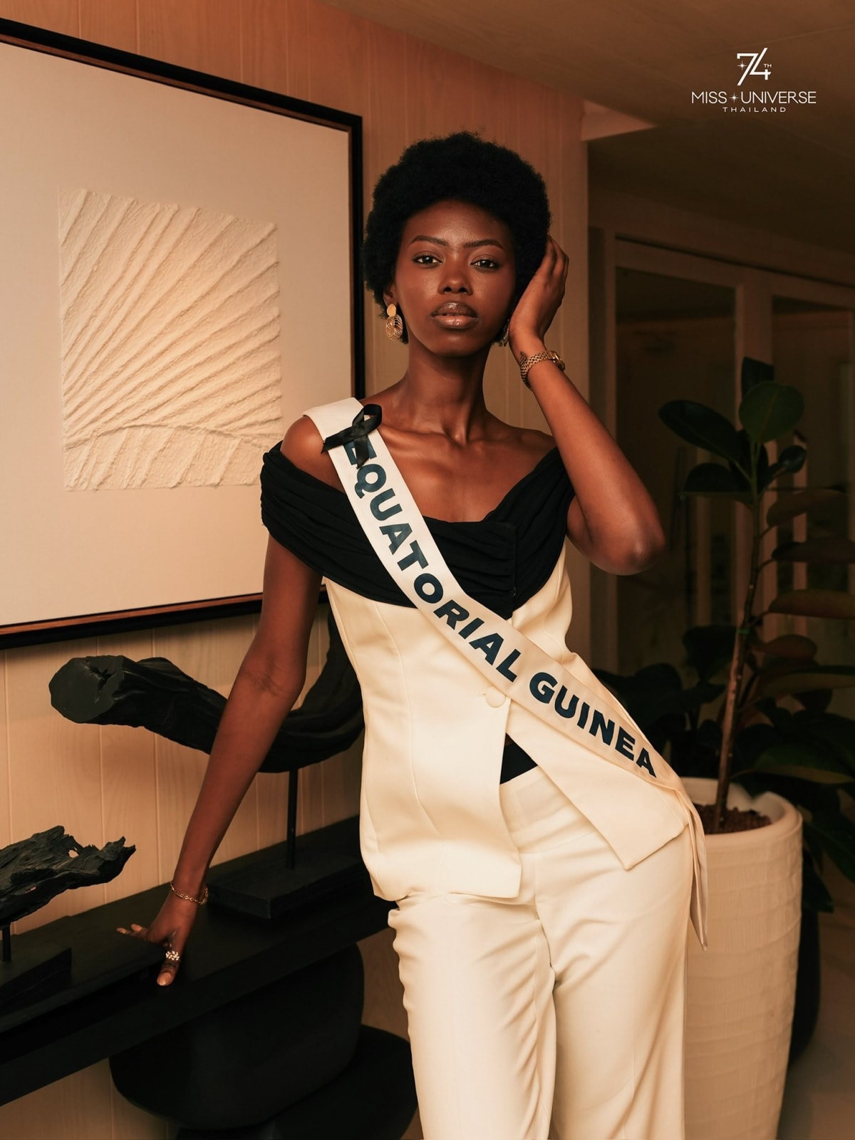 Người đẹp của Cộng hòa Guinea Xích Đạo tạo sự khác biệt với làn da nâu, mái tóc ngắn.