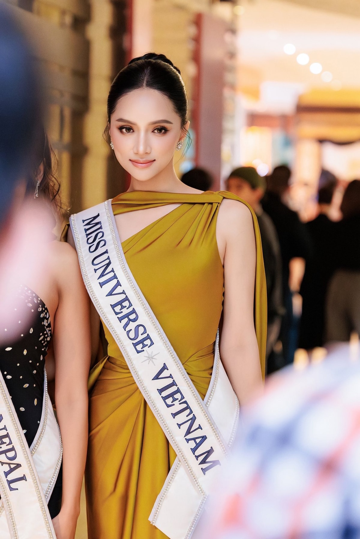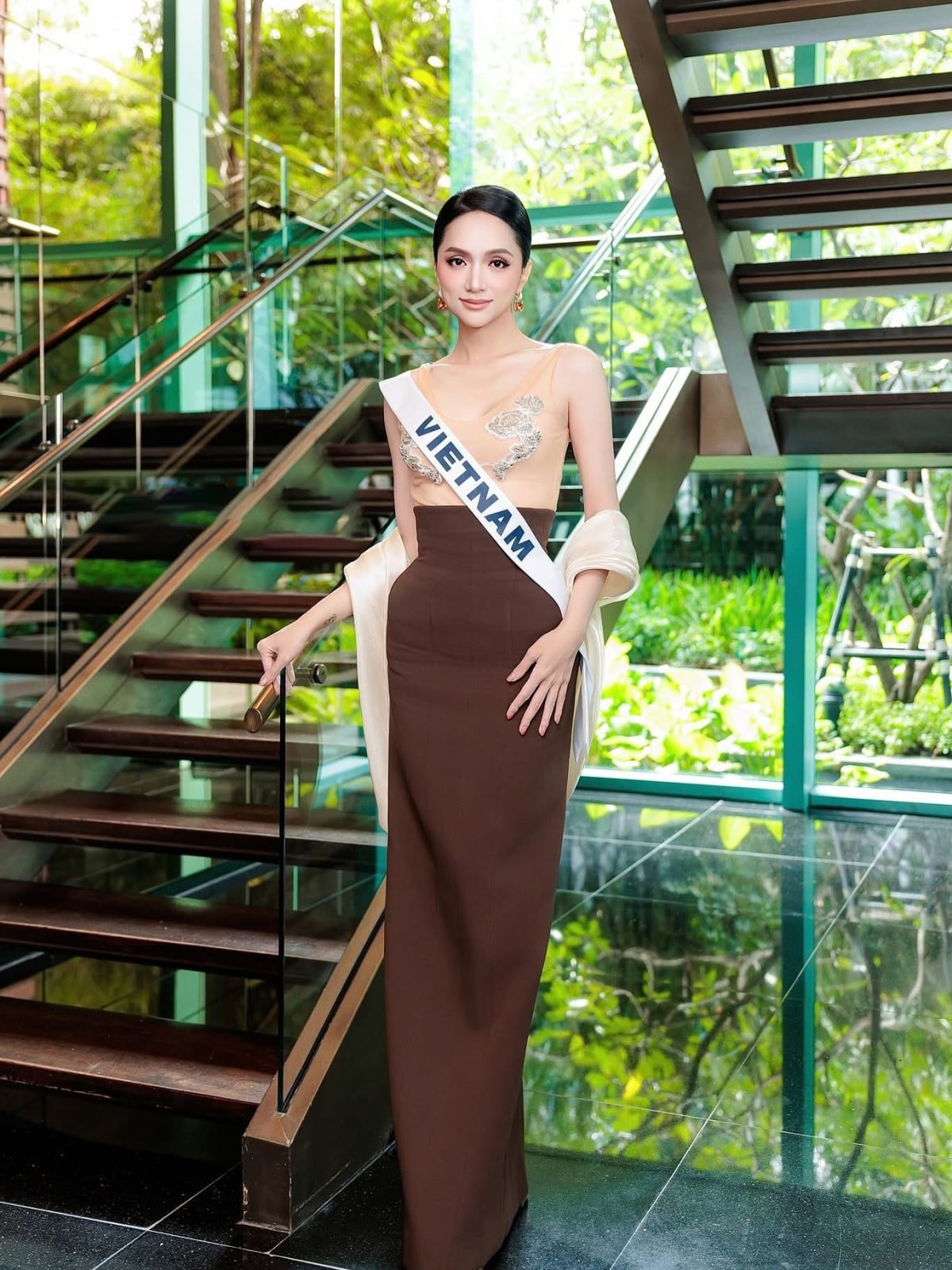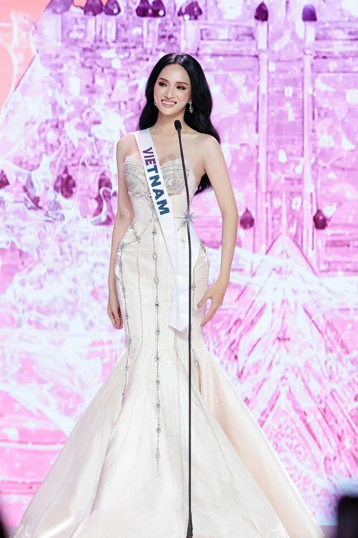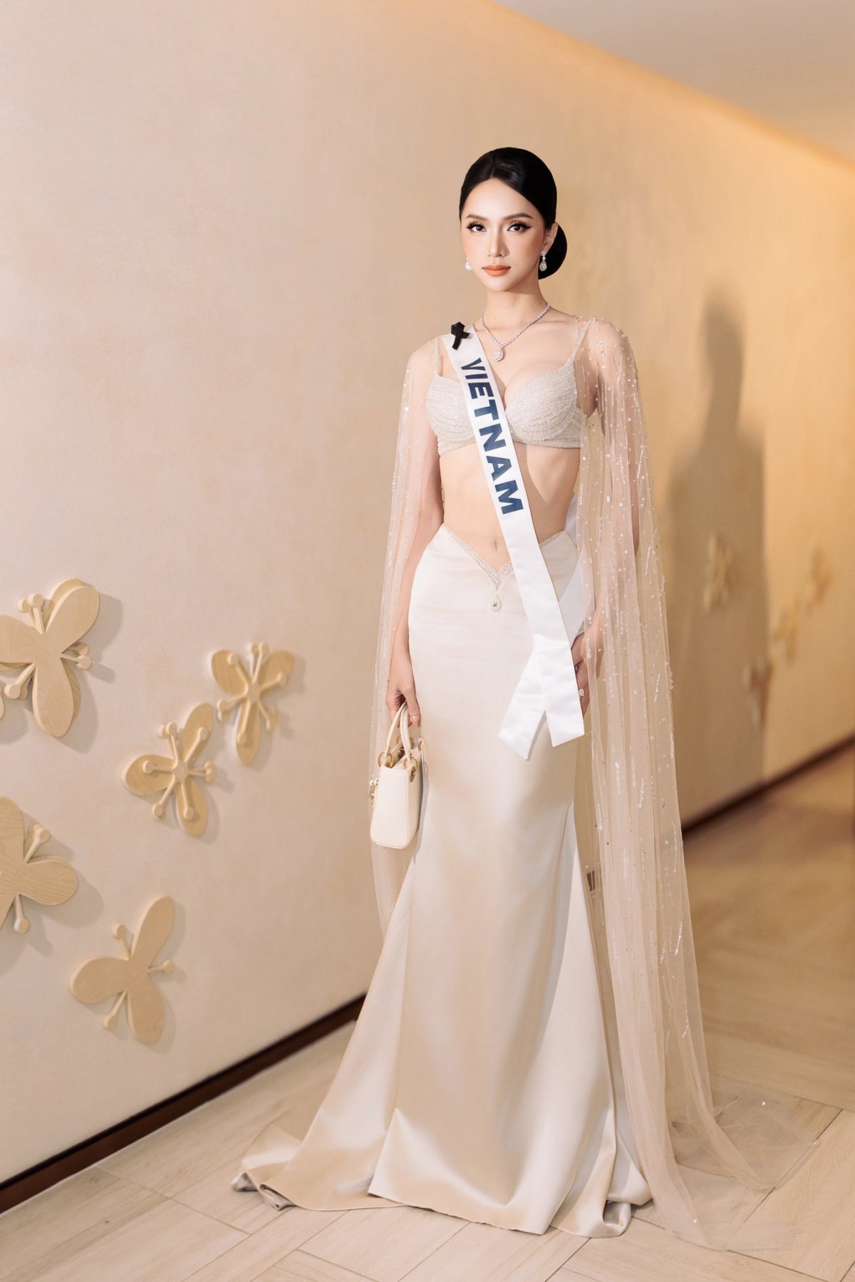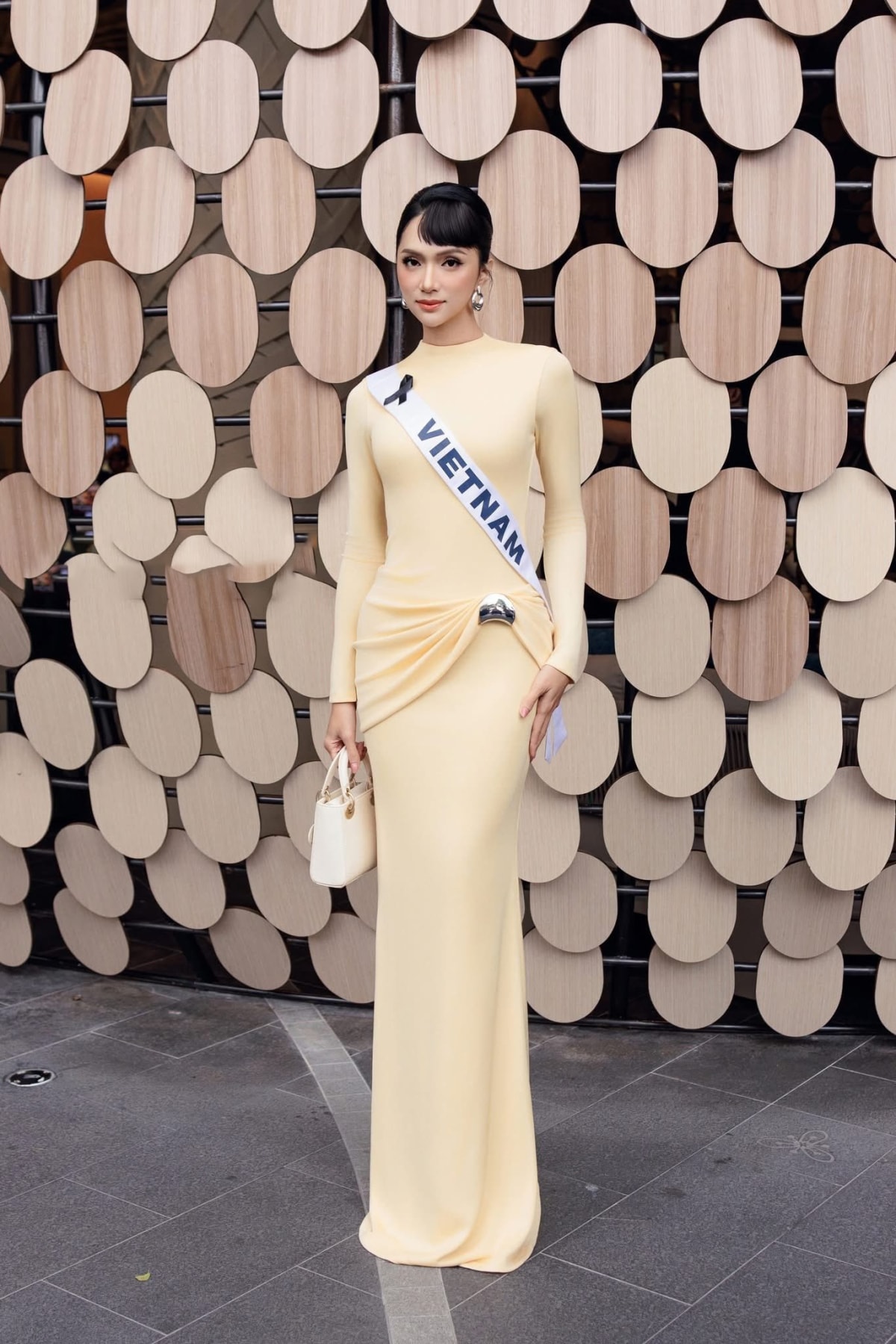 Hoa hậu Hương Giang ghi điểm với đầm thắt eo, tôn chân khi dự thi Miss Universe 2025.