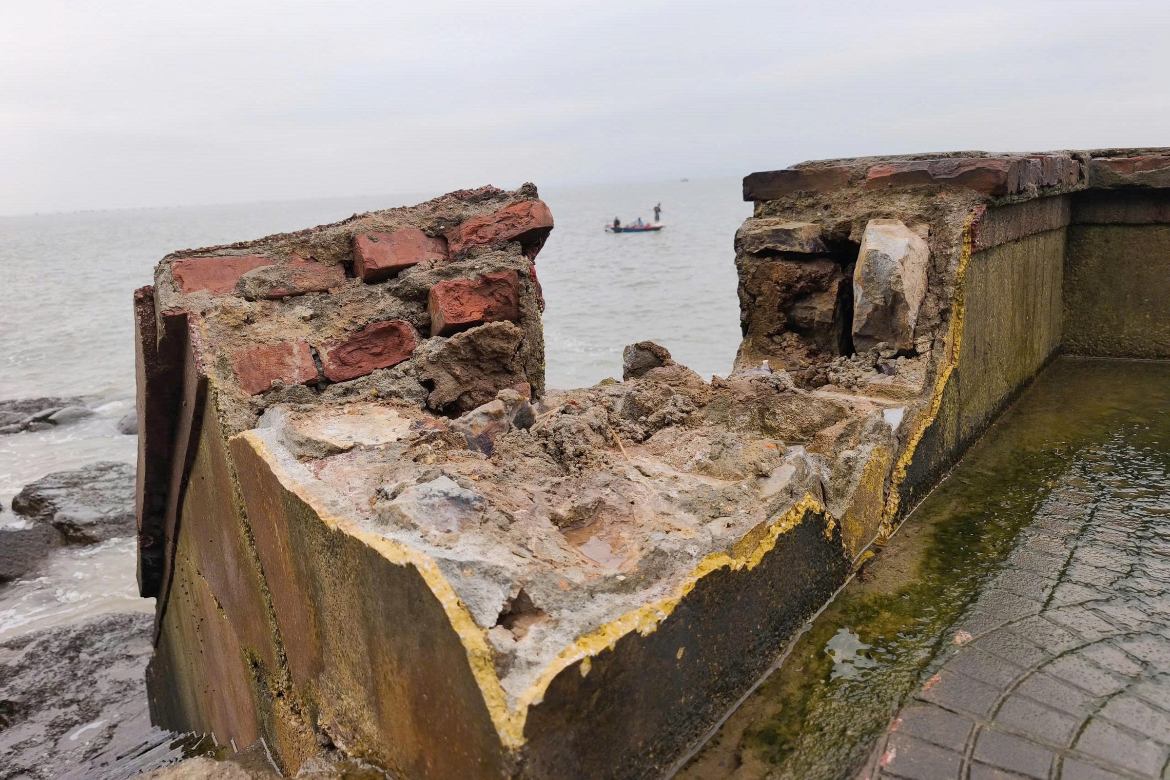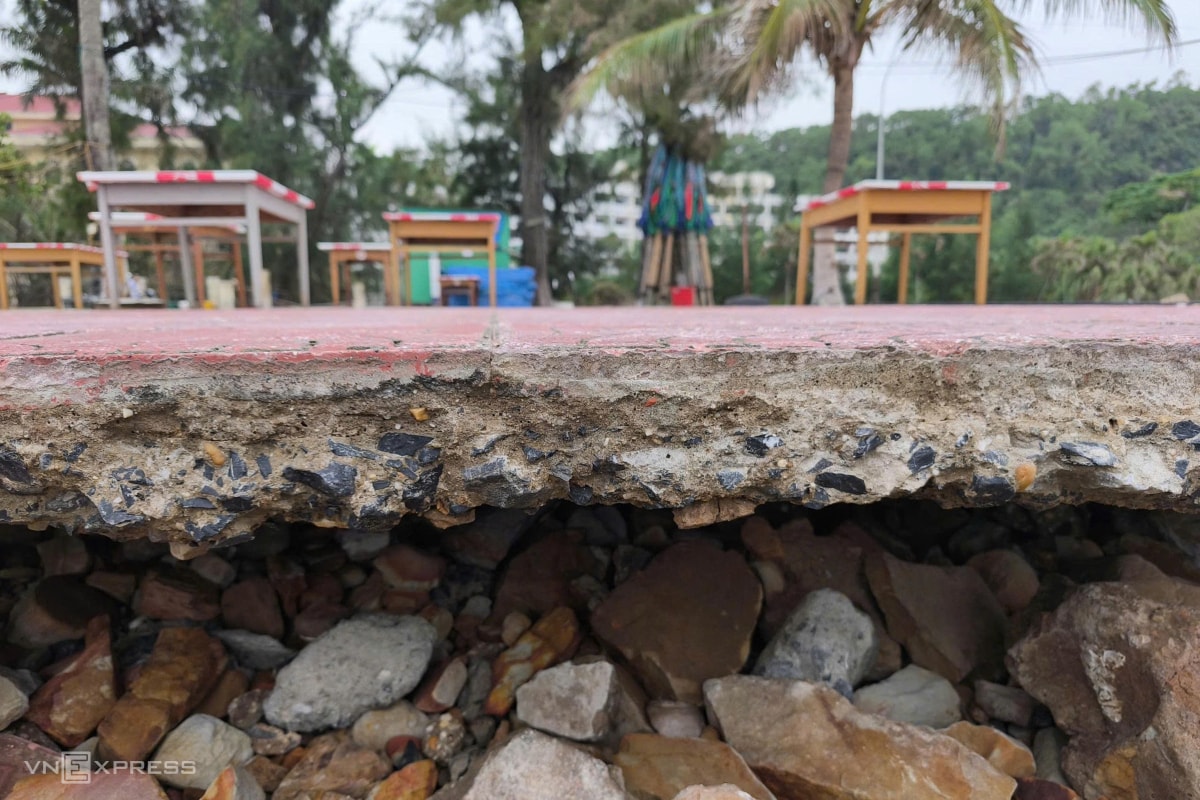 Hư hỏng nhiều năm không được sửa chữa triệt để, kè biển khu du lịch Đồ Sơn sụt lún, vỡ vụn, tiềm ẩn nguy cơ tai nạn và gây mất mỹ quan.