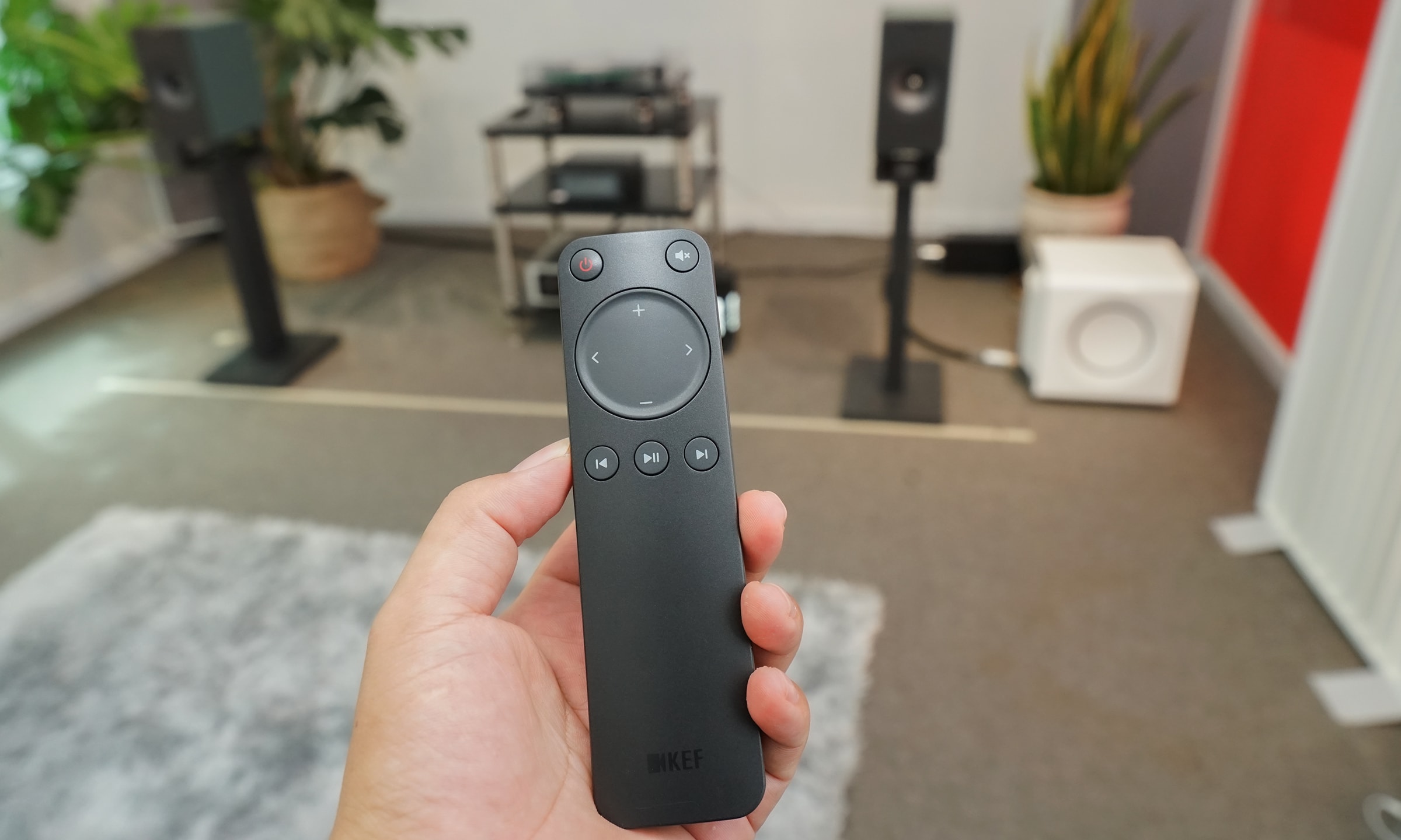 Coda W đi kèm điều khiển từ xa với thiết kế đơn giản gồm phím nguồn, tăng/giảm âm lượng và chuyển bài. Trong khi đó, ứng dụng điều khiển KEF Connect có nhiều chức năng hơn gồm cài đặt EQ, tăng giảm âm bass cũng như chỉnh thêm subwoofer rời khi được kết nối.