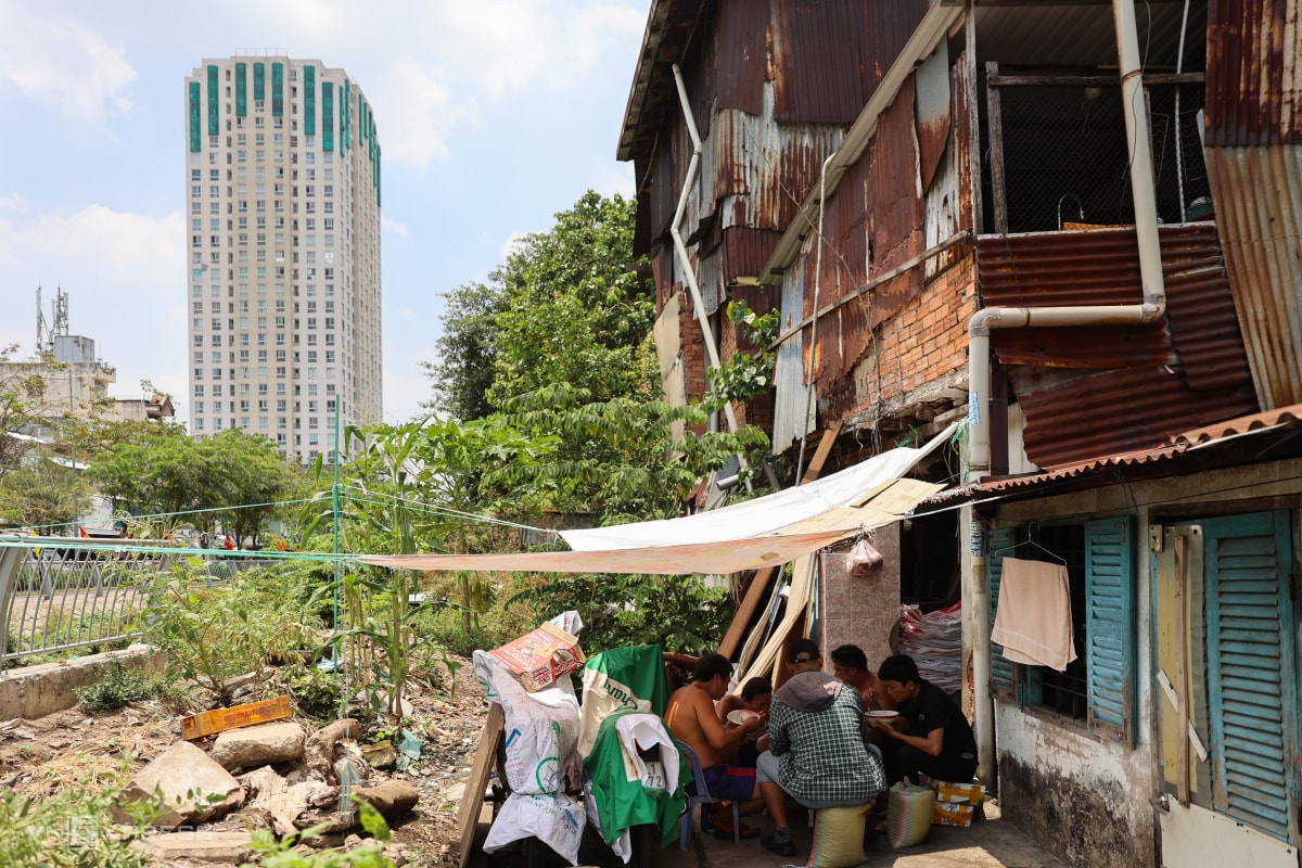 Những căn nhà chưa giải tỏa nằm phần lớn đều xuống cấp, nhiều hạng mục quây tôn cơi nới.