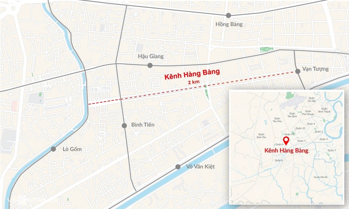 Năm 2000, kênh Hàng Bàng dài gần hai km, nối từ Lò Gốm đến kênh Vạn Tượng bị lấp và thay thế bằng hệ thống cống hộp để giải quyết tình trạng ô nhiễm. Sau 15 năm, trước nhu cầu cải thiện môi trường và chỉnh trang đô thị, TP HCM triển khai dự án khôi phục dòng kênh này theo ba giai đoạn, tổng kinh phí khoảng 2.000 tỷ đồng.