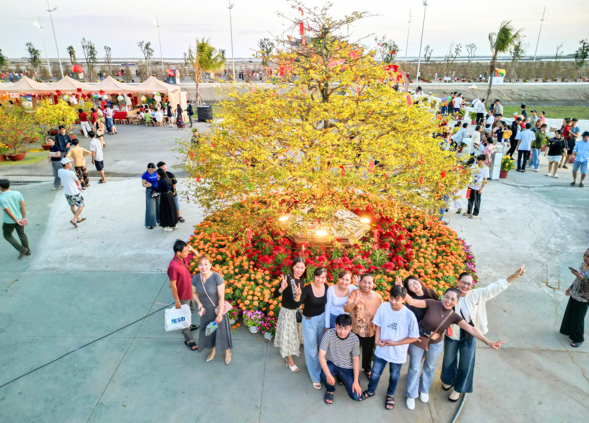 Gia đình 12 người của chị Trúc Ly hào hứng tạo dáng bên cây mai 150 tuổi. Nhà ở gần lễ hội, chị cho biết Cần Giờ từ lâu được ví như "lá phổi xanh" của thành phố nhờ không khí trong lành, mát mẻ. Chị mong muốn các doanh nghiệp tăng cường đầu tư vào du lịch, tổ chức thêm nhiều hoạt động, lễ hội quy mô tương tự Green Paradise Tet Fest để thu hút du khách đến địa phương. "Có thêm nhiều hoạt động vui chơi, chắc chắn Cần Giờ sẽ phát triển hơn trong tương lai", chị bày tỏ.