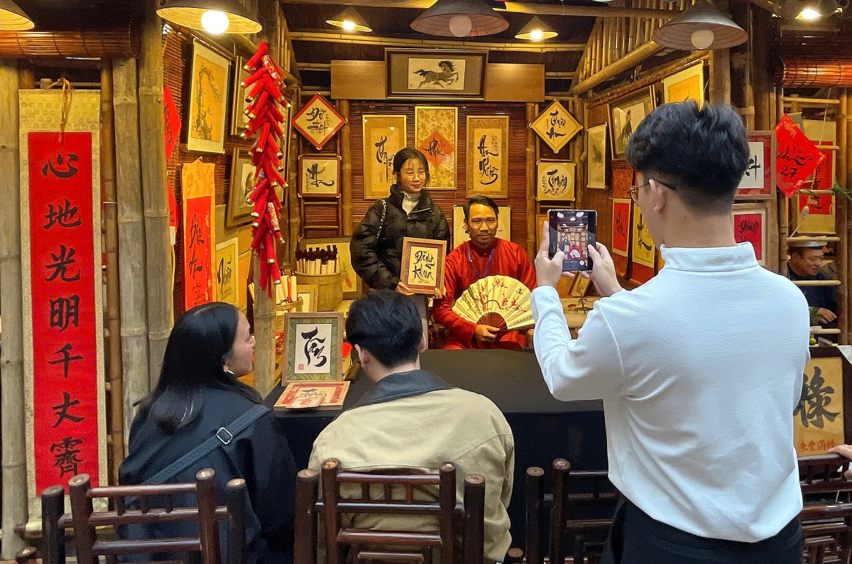 Hội chữ Xuân được bố trí ở khu Hồ Văn là không gian thưởng thức thư pháp, xin chữ đầu năm, đề cao tinh thần hiếu học, trọng đạo lý.