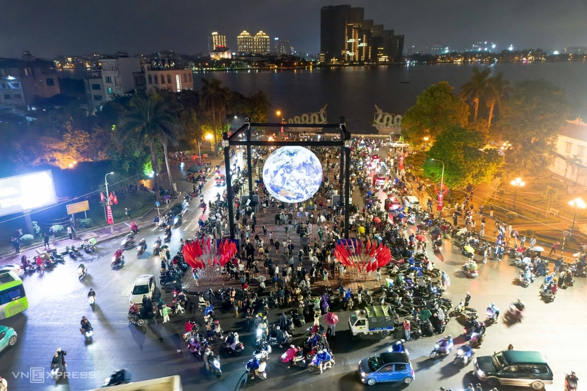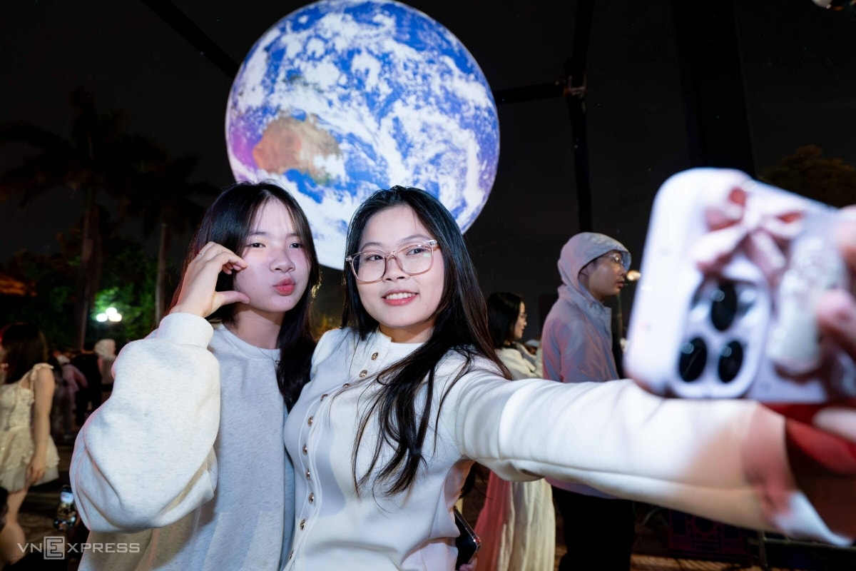 Khách đổ xô check in quả cầu lơ lửng ở Hồ Tây