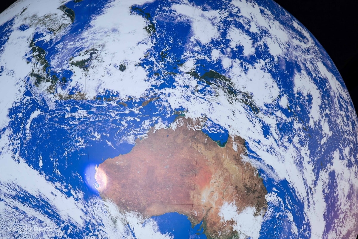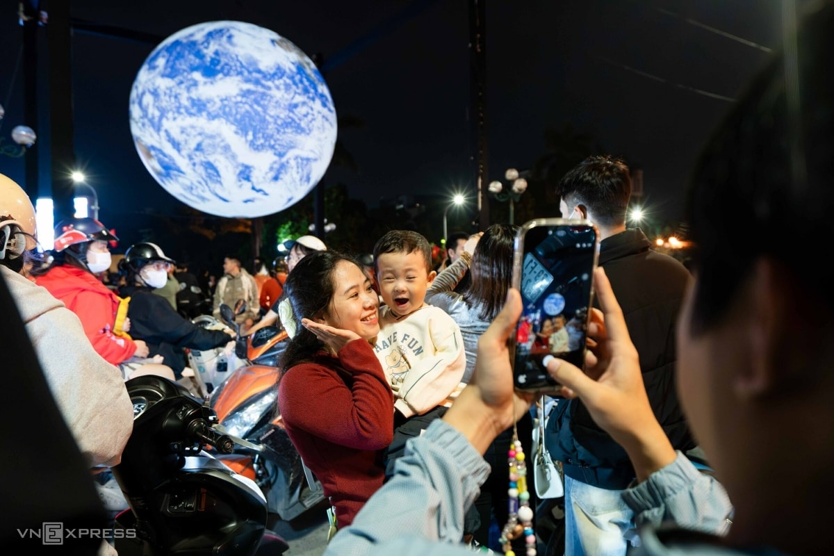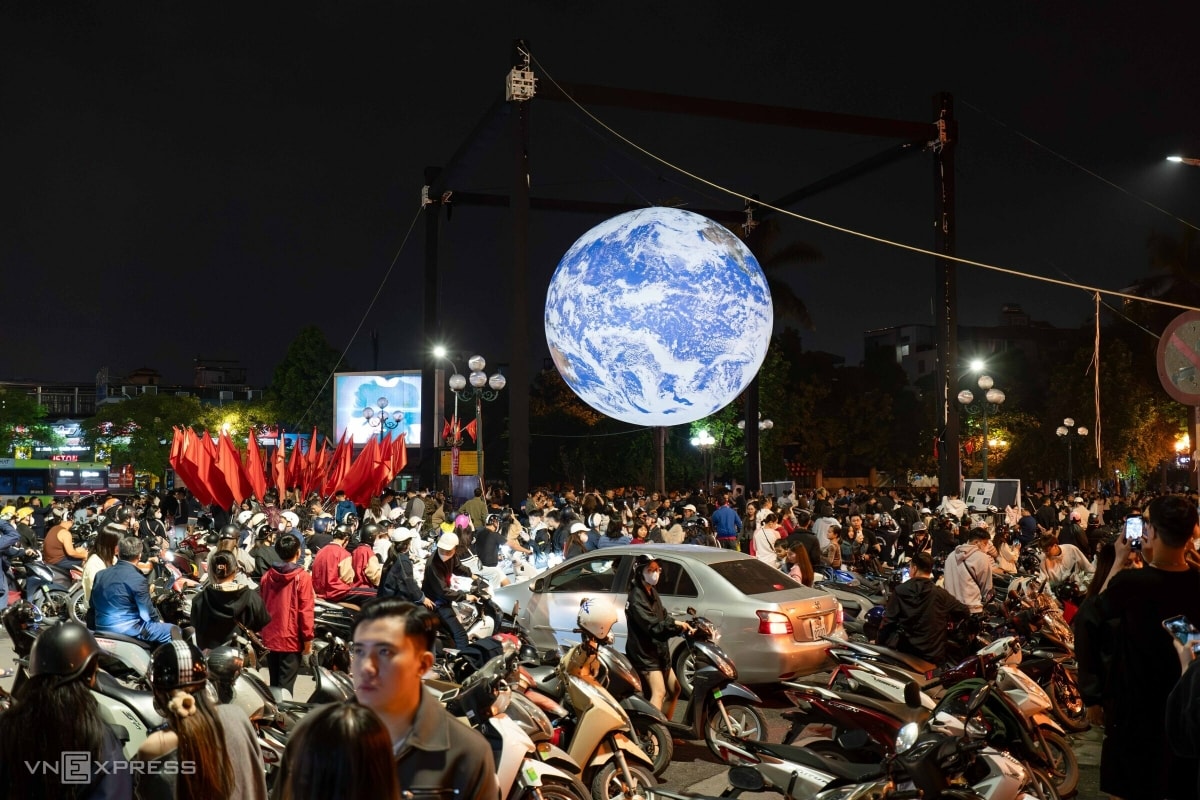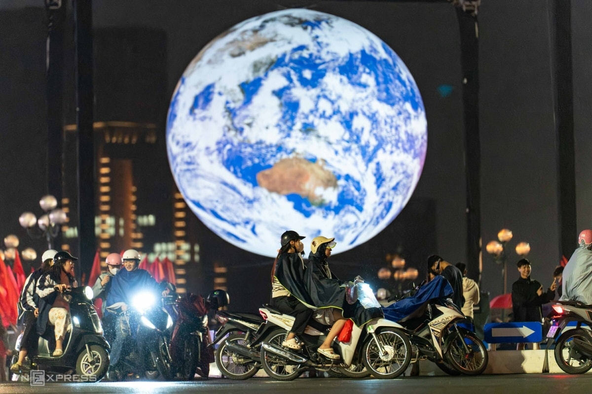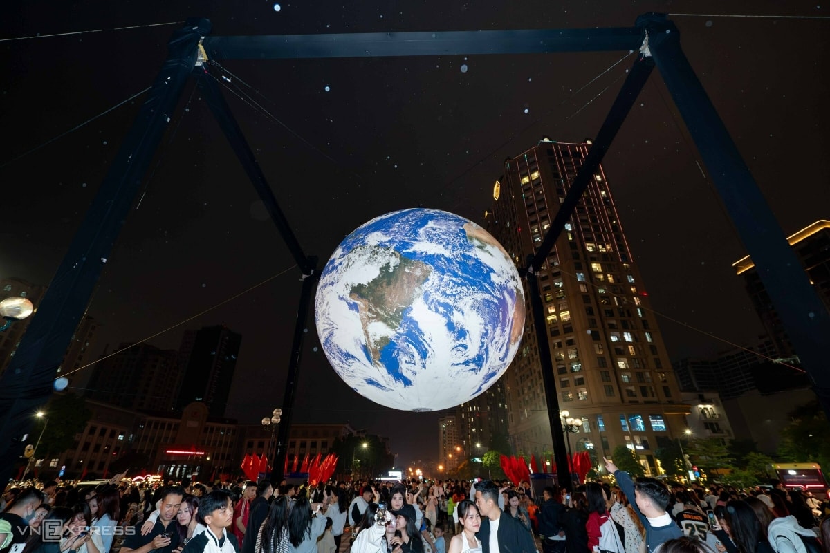 Quả địa cầu khổng lồ có tên Gaia của nghệ sĩ người Anh được dựng tại vườn hoa Lạc Long Quân, Tây Hồ, thu hút hàng nghìn khách chiêm ngưỡng.