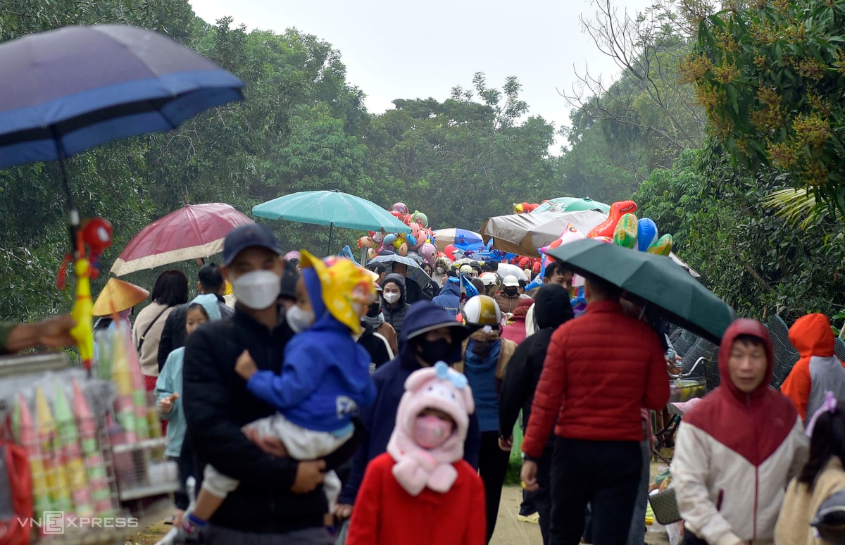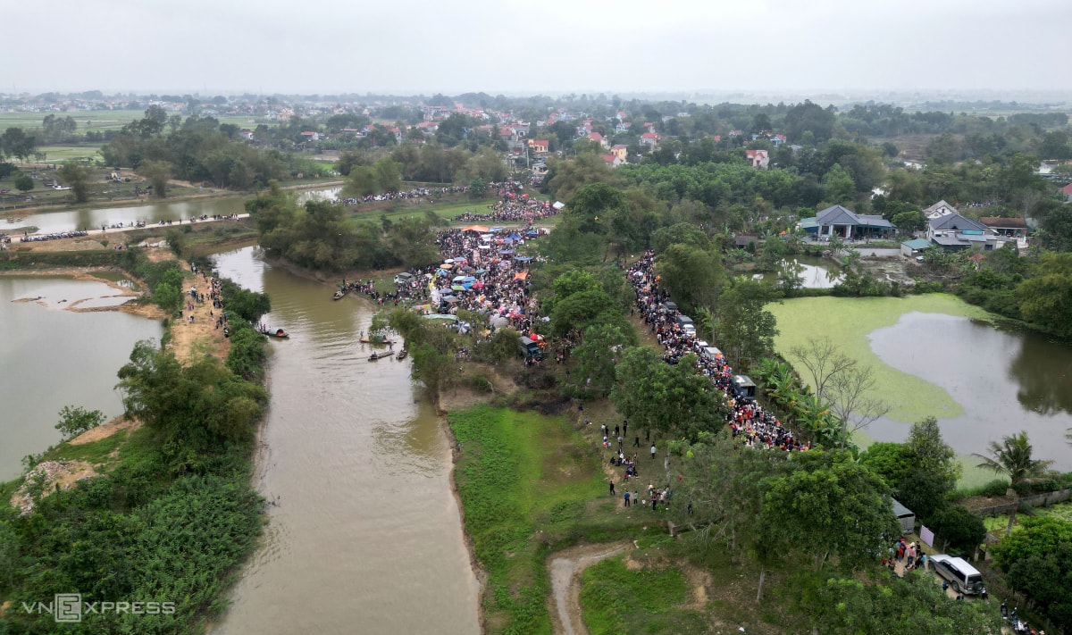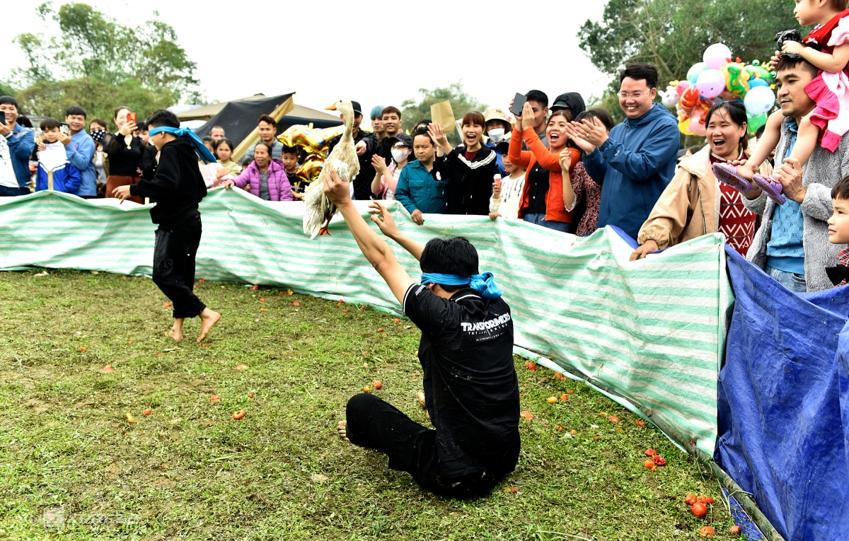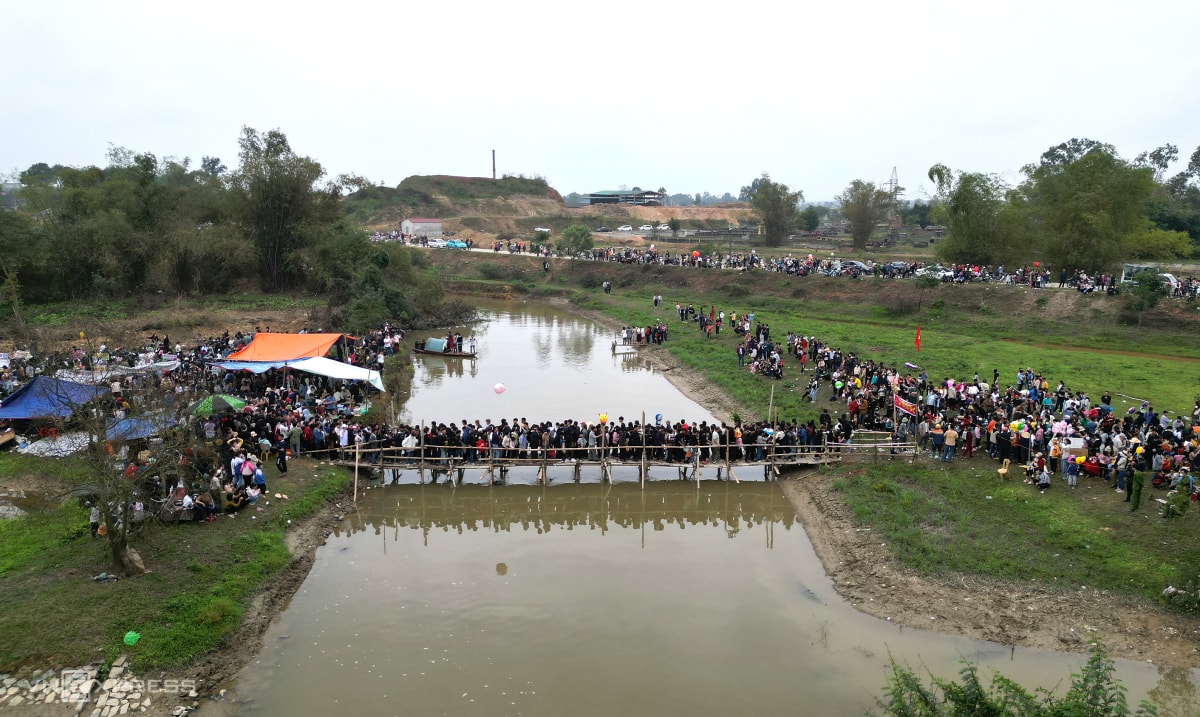 Hàng nghìn du khách và người dân đổ về chợ Chuộng mua cà chua, trứng thối ném nhau, với quan niệm ai "trúng đạn" càng nhiều càng gặp may trong năm mới.