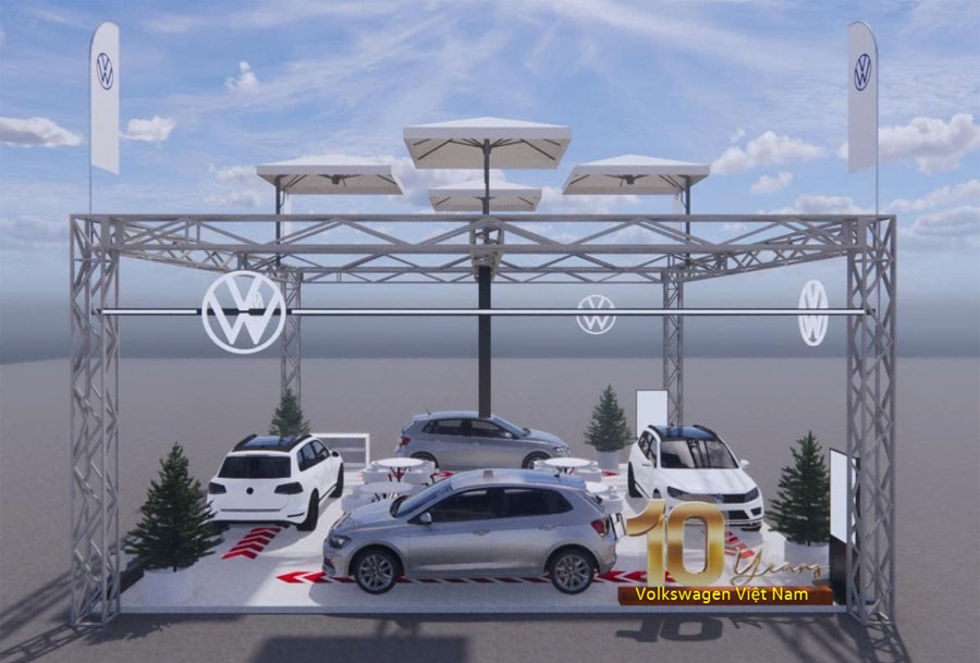 Tại gian trưng bày của VW là 4 mẫu xe, gồm Golf, Viloran, Teramont X, Teramont President, trong khi xe lái thử sa hình và đường trường có Golf, Teramont X và Touareg.