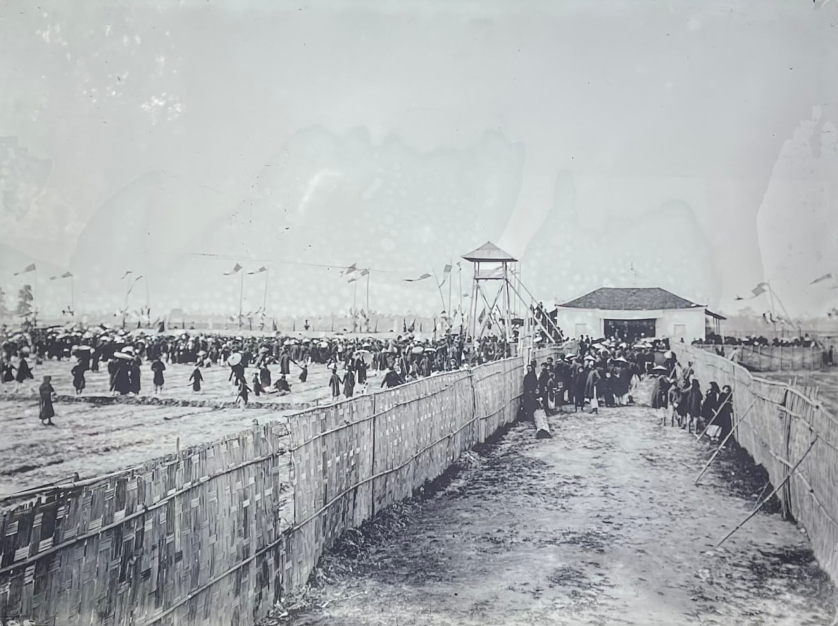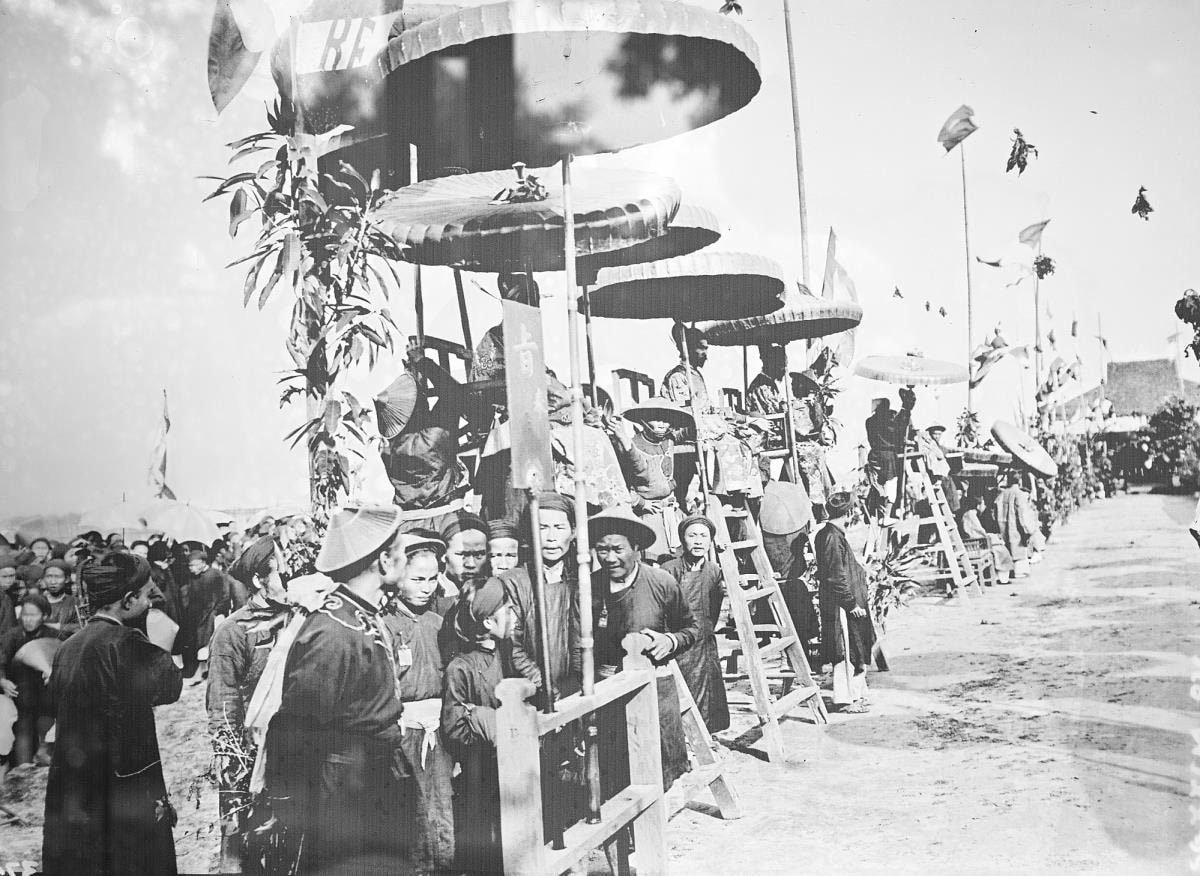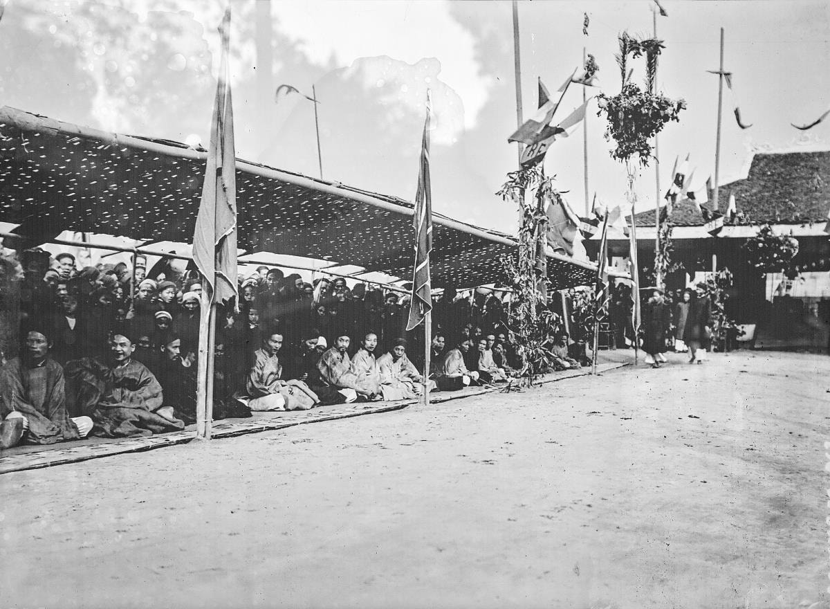 Cảnh náo nhiệt trong lễ xướng danh, ban giám khảo khoa thi Hương năm 1897 chụp lưu niệm được ghi lại qua ảnh.