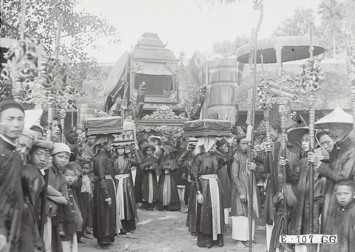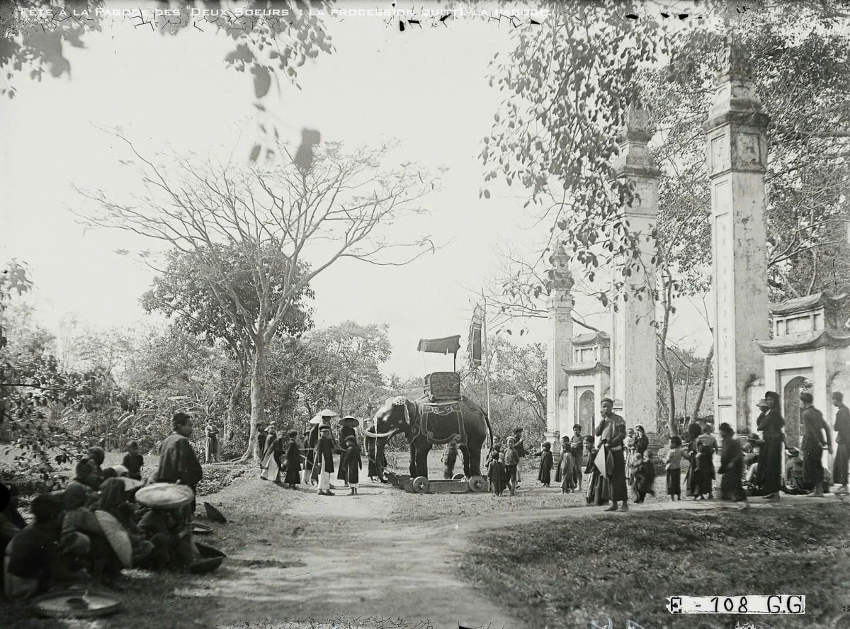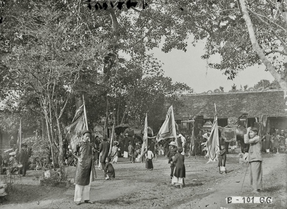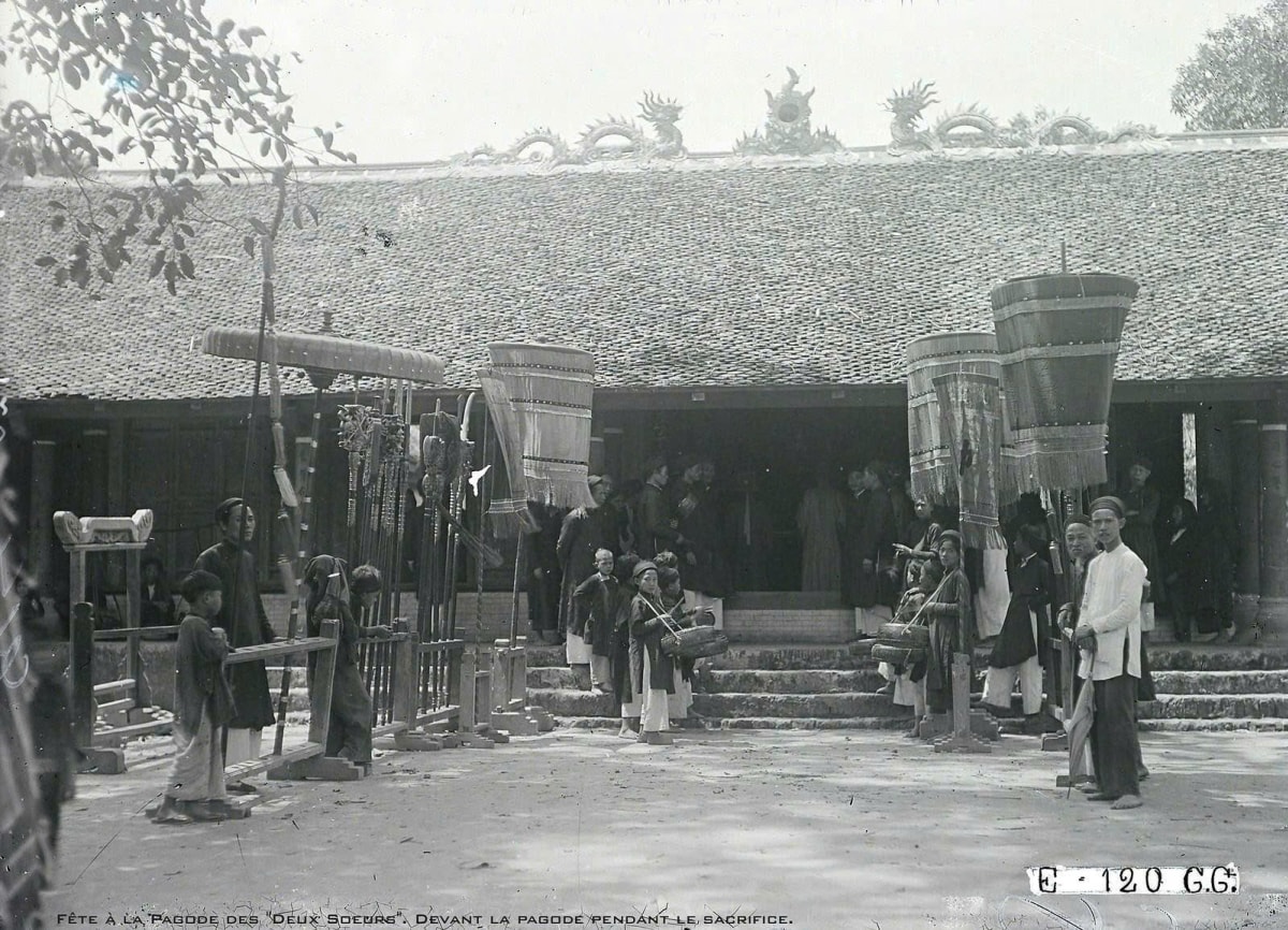 Cảnh người dân tham gia lễ hội đền Hai Bà Trưng, chùa Hương vào thế kỷ 20 được ghi lại qua ảnh tư liệu.